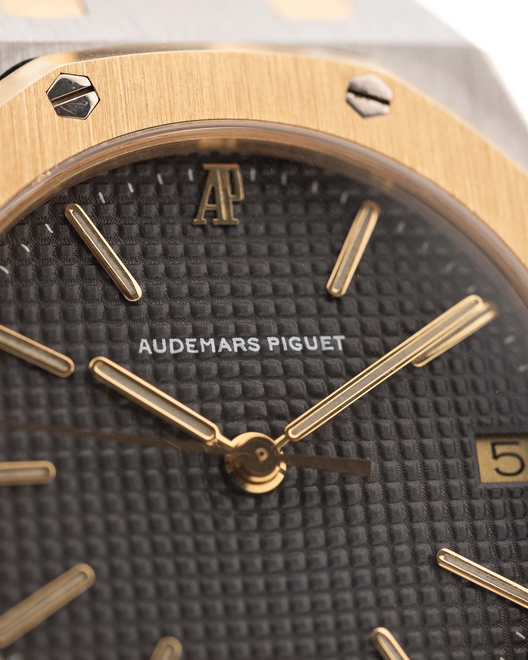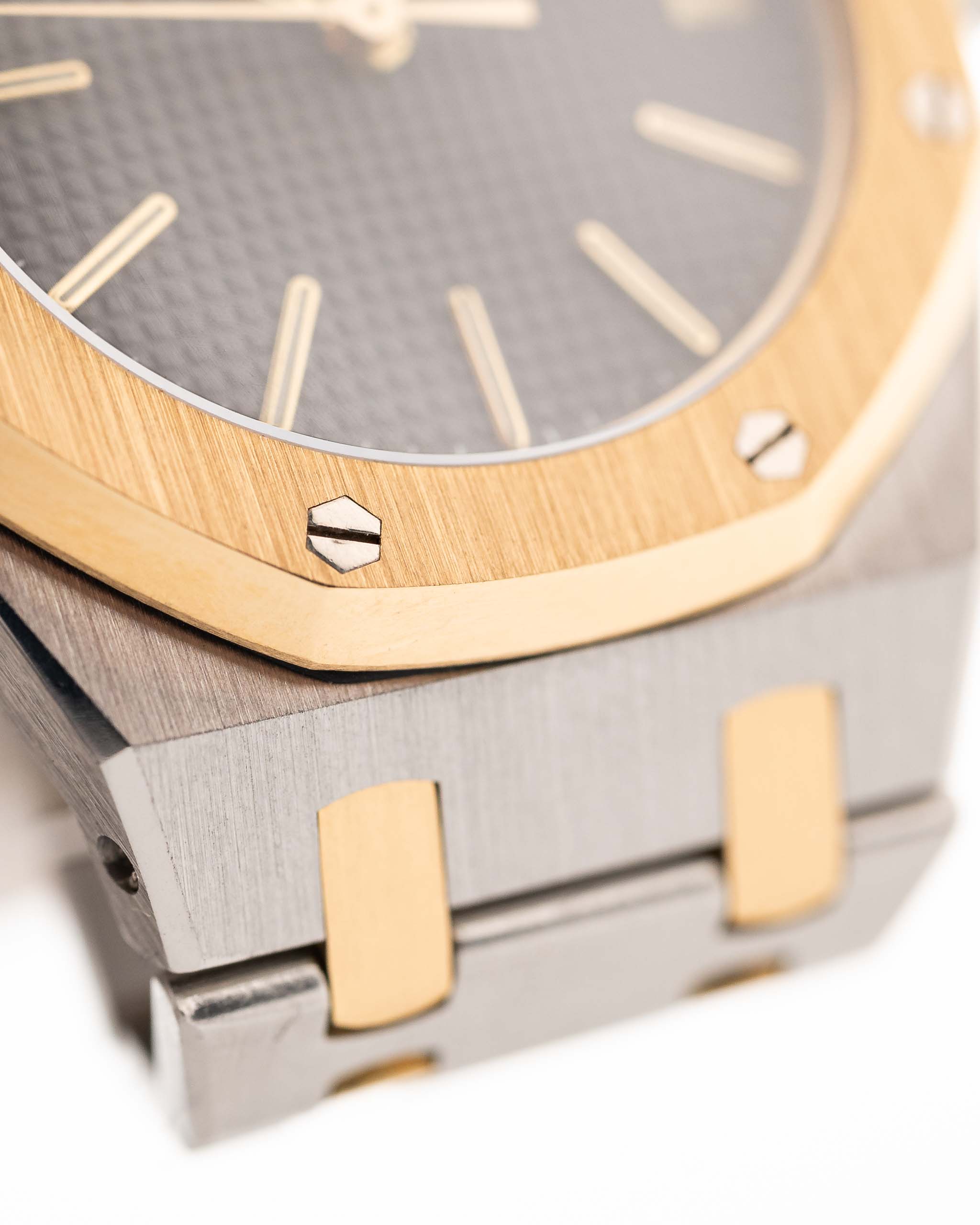 Vintage Audemars Piguet 4100SA Royal Oak Uhr aus den 1980er Jahren. Edelstahl & 18k Gelbgold mit seltenem, makellosem, grauem Tapisserie-Zifferblatt, Two-Tone-Armband.