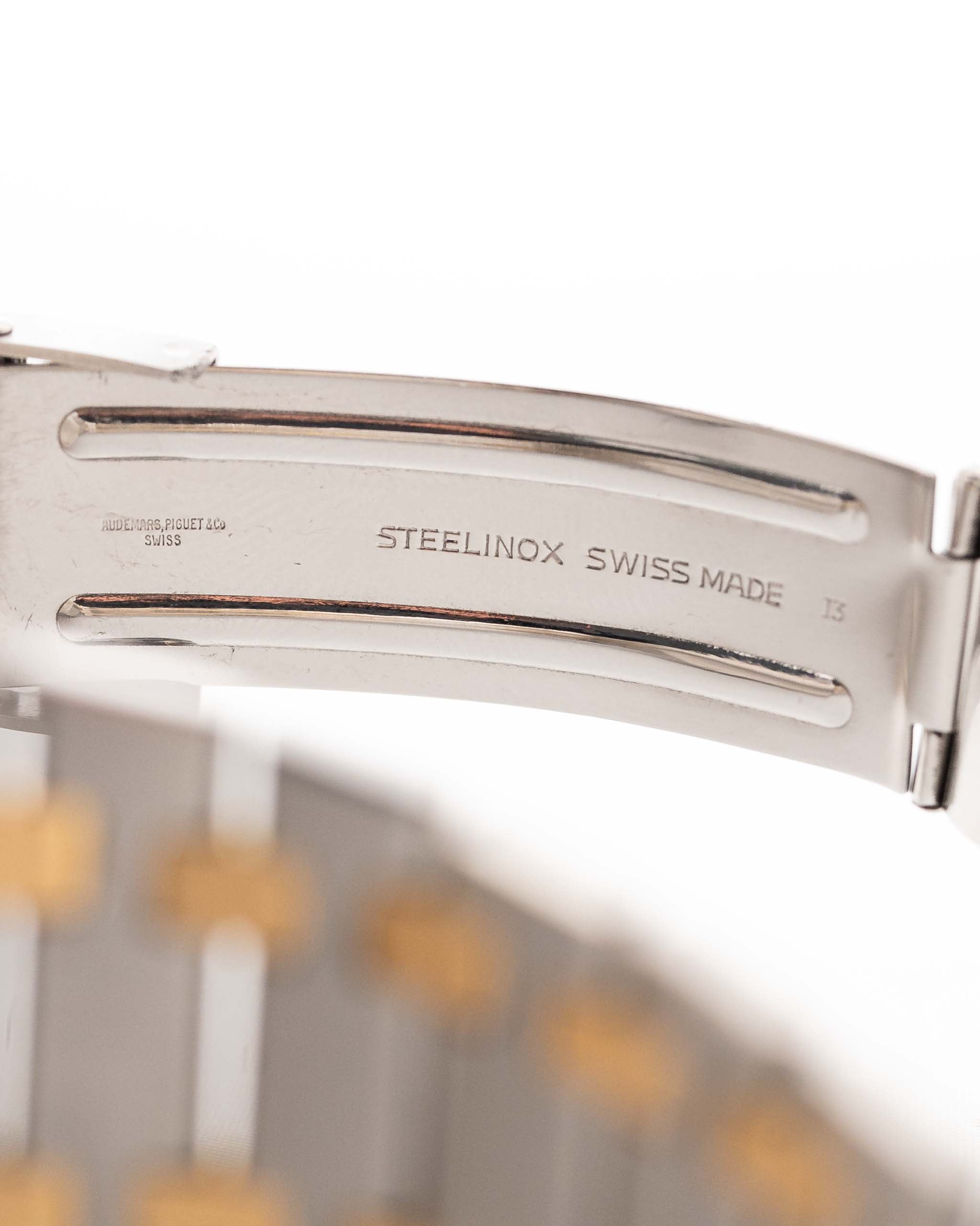 • Edelstahl/18k Gelbgold "Royal Oak" Armband kann bis zu einem 18 cm langen Handgelenk mit sehr leichter Dehnung getragen werden / 2,5 mm dick