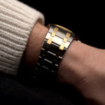 • 3-teiliges Gehäuse aus Edelstahl/18k Gelbgold mit verschraubtem Gehäuseboden