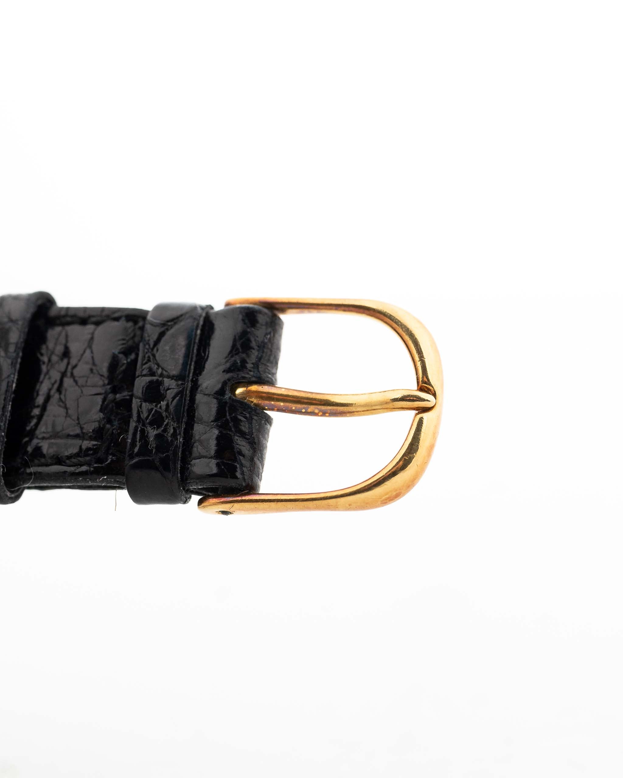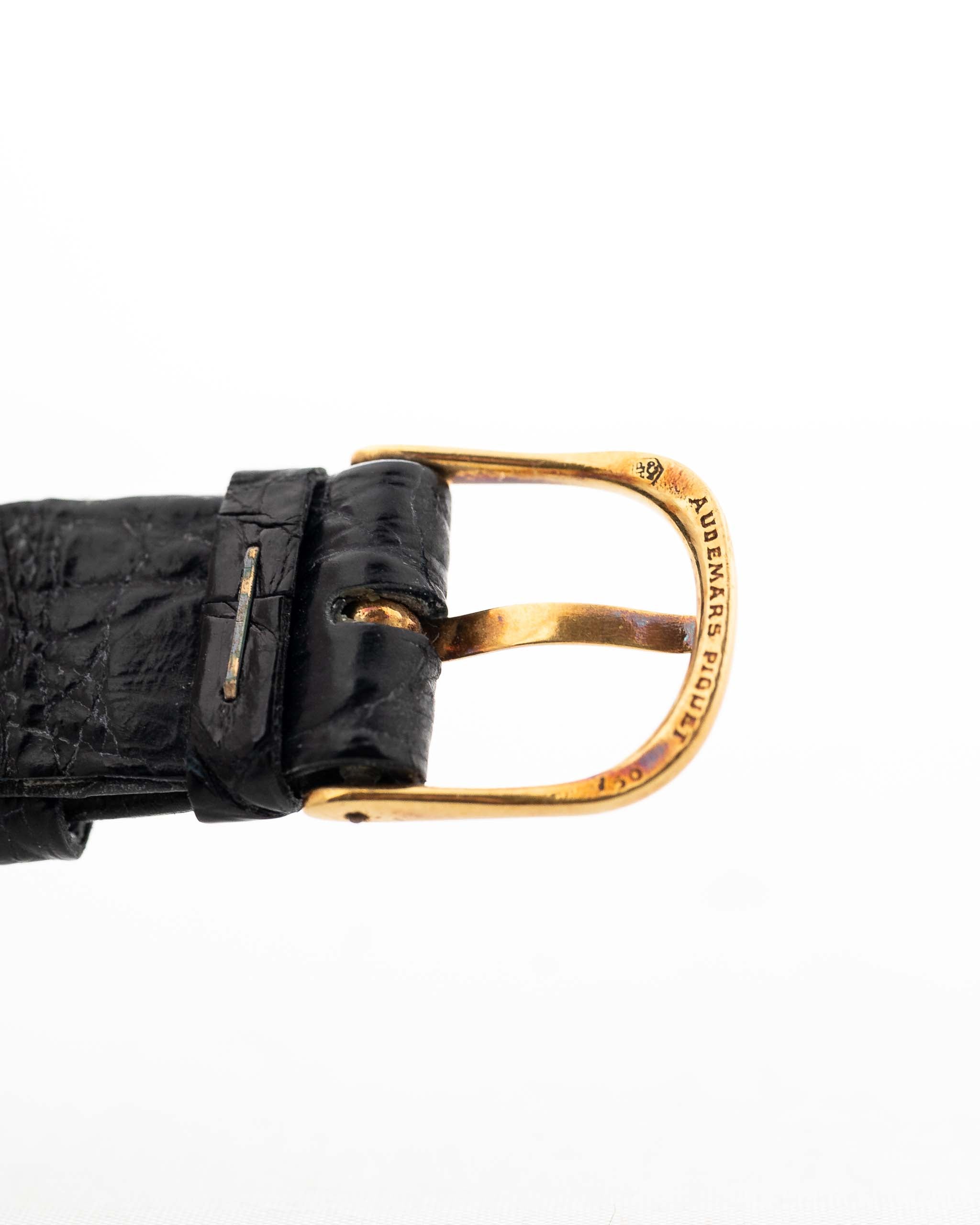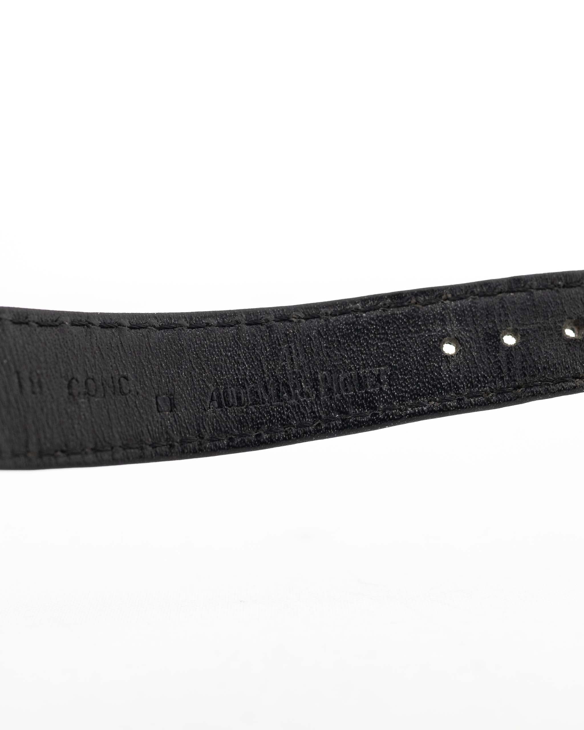 Dieses besondere Stück zeichnet sich durch sein sehr schlankes Profil aus und wird mit einem originalen Lederband und einer 18k AP-Schließe geliefert.