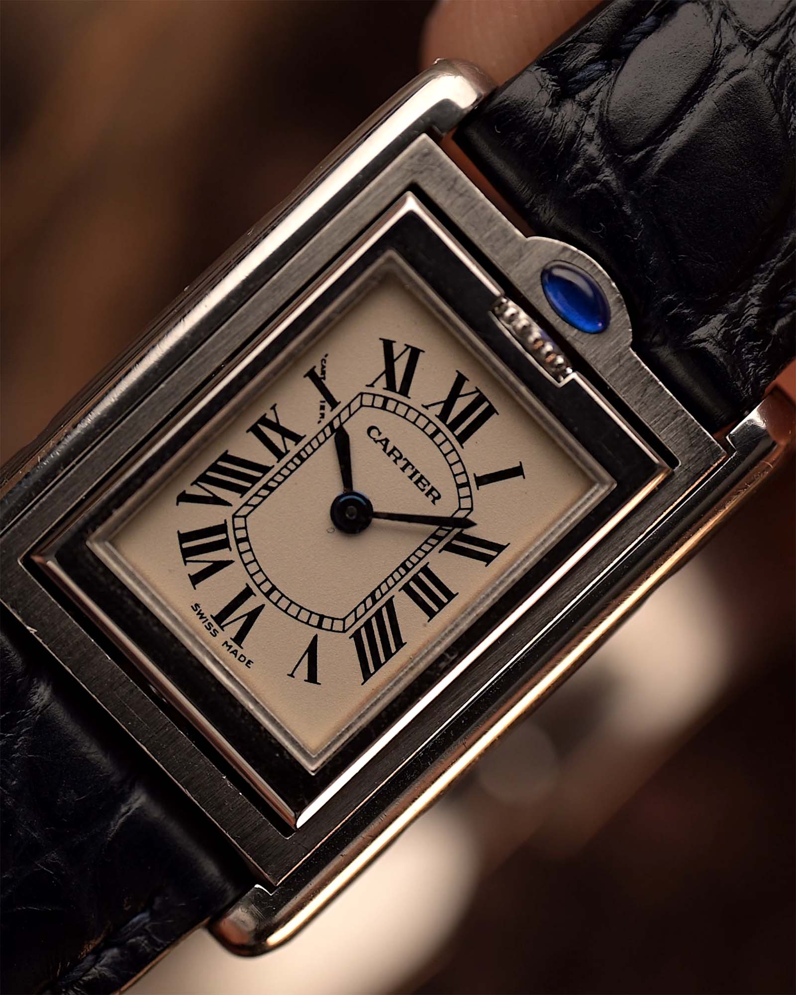 Eine Vintage Cartier zu tragen bedeutet, zu verstehen, dass weniger oft mehr ist. Sie ist für den Sammler, der keinen Lärm braucht, um sich präsent zu fühlen. Jemand, der zeitlose Schönheit in römischen Ziffern, chemin-de-fer Minutenstrichen und gebläuten Schwertzeigern sieht.