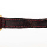 Das schlanke, langgestreckte ovale Gehäuse aus 18 Karat Gelbgold ist anmutig und unverwechselbar zugleich und bietet eine perfekte Balance aus Weiblichkeit und Kühnheit. Das für Cartier typische Zifferblatt mit römischen Ziffern und blauen Stahlzeigern sorgt für zeitlose Eleganz.