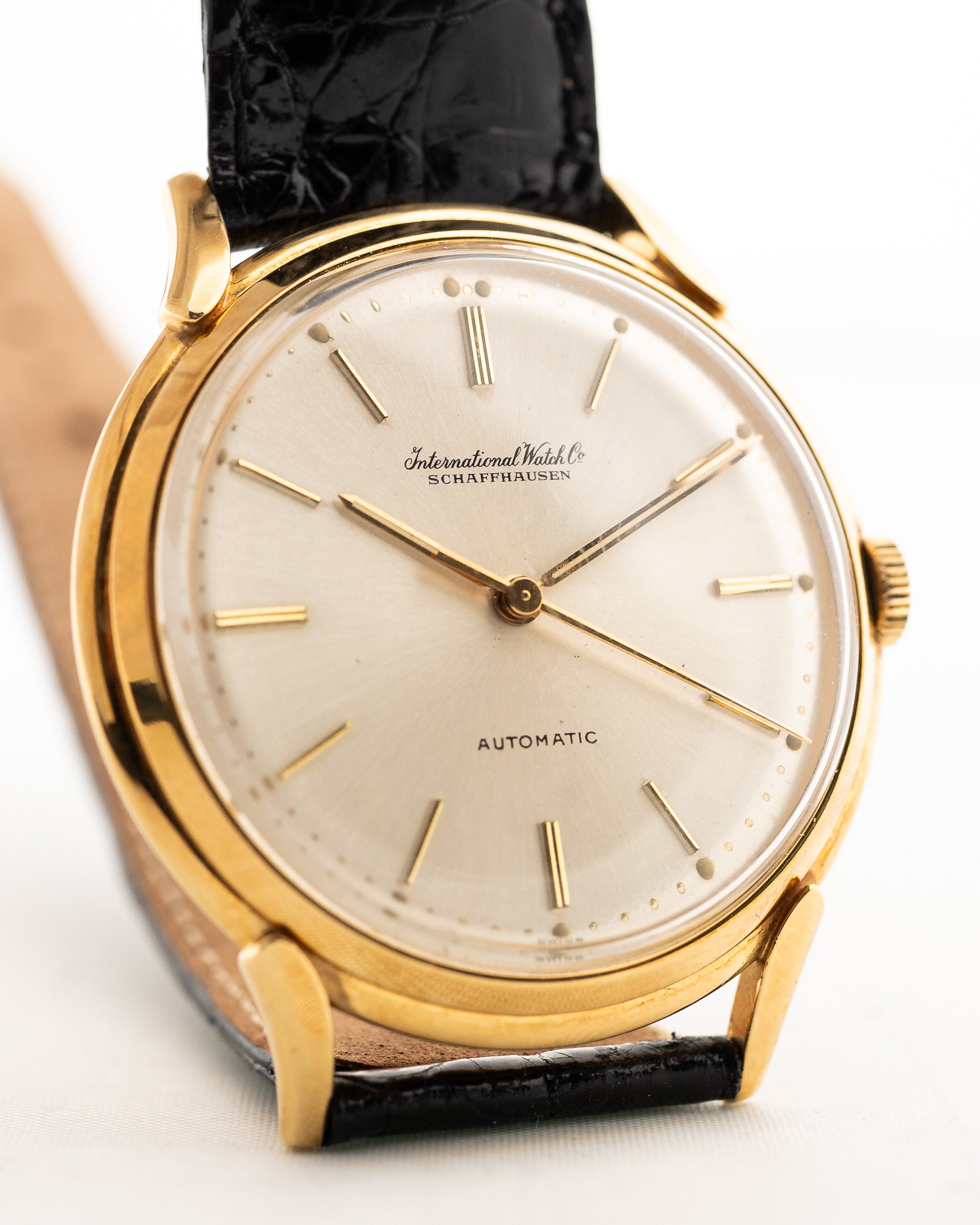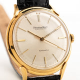 IWC hat schon früh eine breite Palette von Armbanduhren hergestellt, die von Kleideruhren bis hin zu Fliegeruhren reicht. Dieses Exemplar mit einem Gehäuse aus 18 Karat Gelbgold ist in einem hervorragenden Zustand und hat ein wunderschön gestaltetes silbernes Zifferblatt mit einfachen Strichindizes und Zeigern, das in keiner Sammlung fehlen darf.