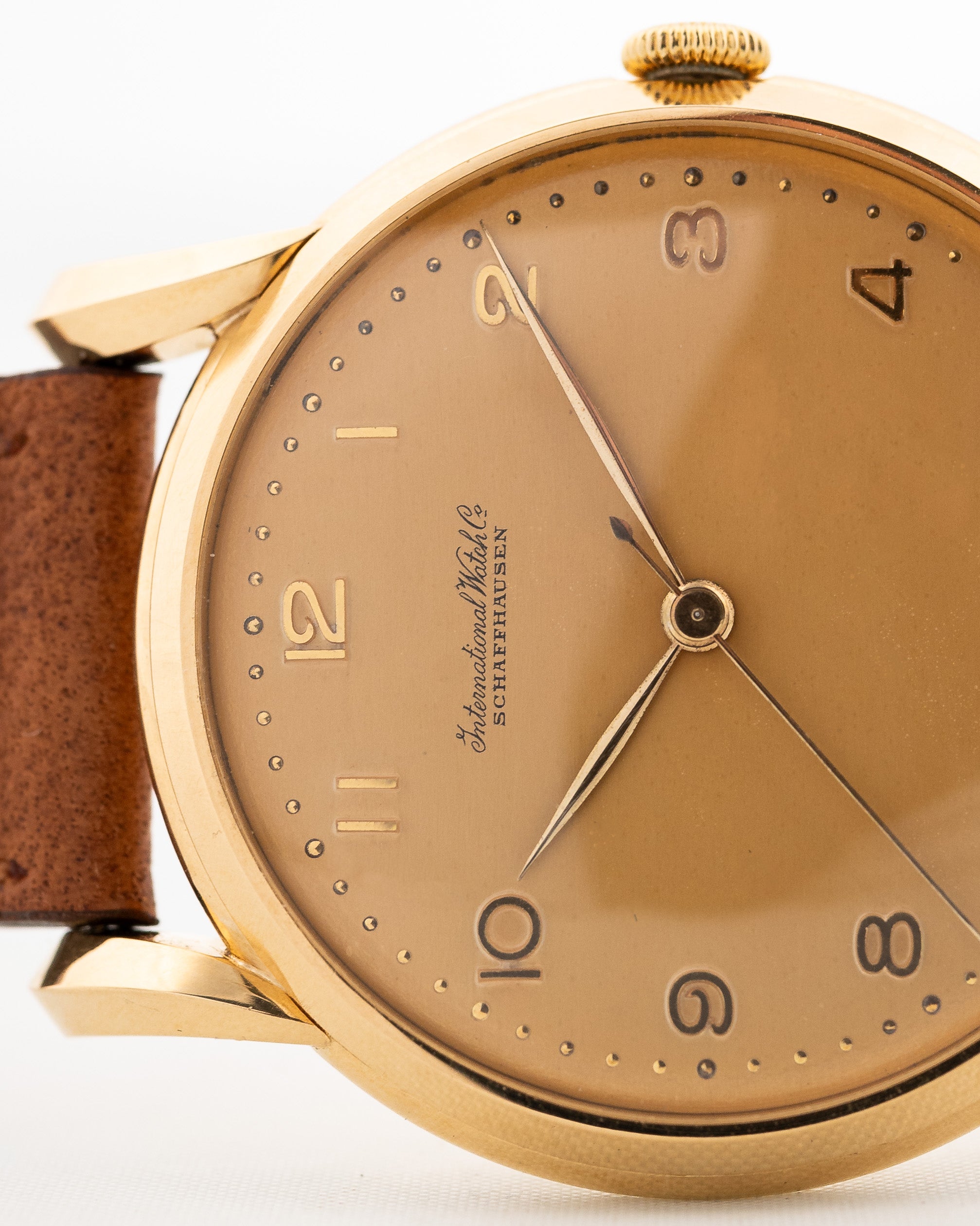 IWC hat schon früh eine breite Palette von Armbanduhren hergestellt, die von Kleideruhren bis hin zu Fliegeruhren reicht. Dieses Exemplar aus 18-karätigem Gelbgold im Calatrava-Stil mit Bombé-Anhängern sollte in keiner Sammlung fehlen, zumal es sich in einem hervorragenden nos-Zustand befindet.