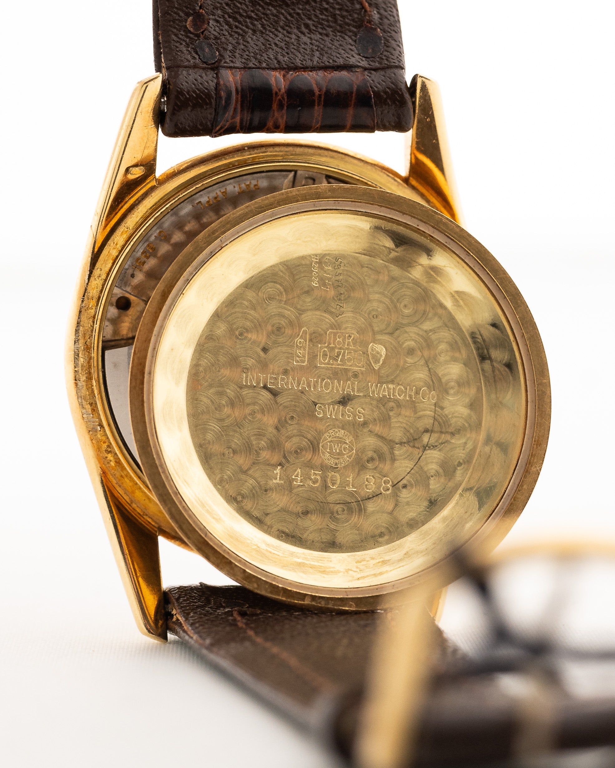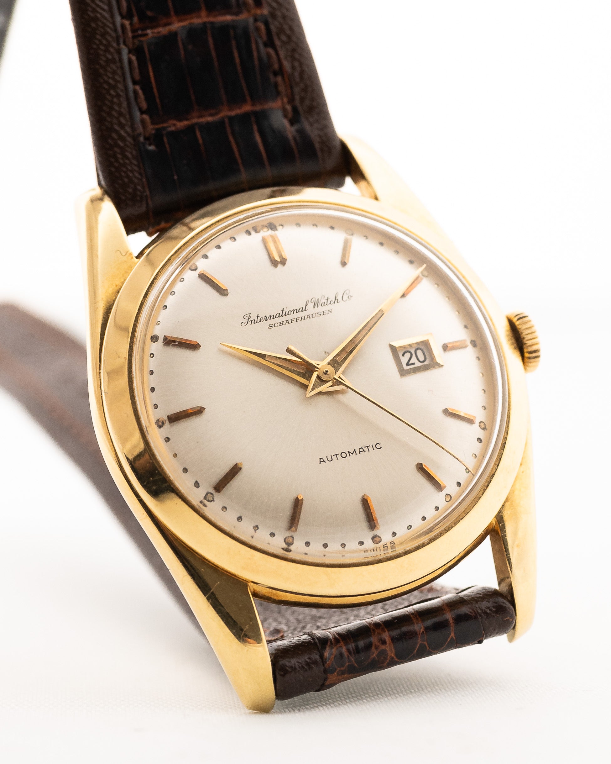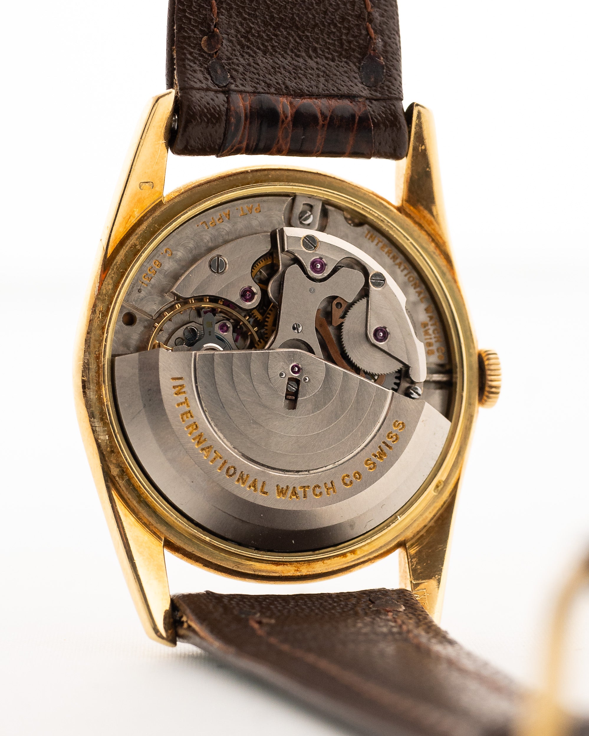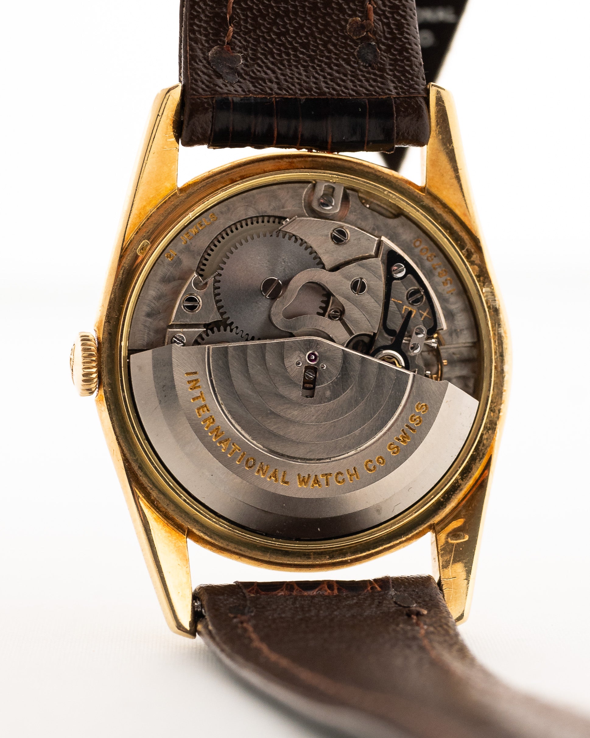 IWC hat schon früh eine breite Palette von Armbanduhren hergestellt, die von Kleideruhren bis hin zu Fliegeruhren reicht. Dieses Exemplar mit einem Gehäuse aus 18k Gelbgold ist in einem hervorragenden Zustand und hat ein wunderschön gestaltetes weiß/silbernes Sonnenschliff-Zifferblatt mit einfachen Stabindexen ist eine Konstante in jeder Sammlung.