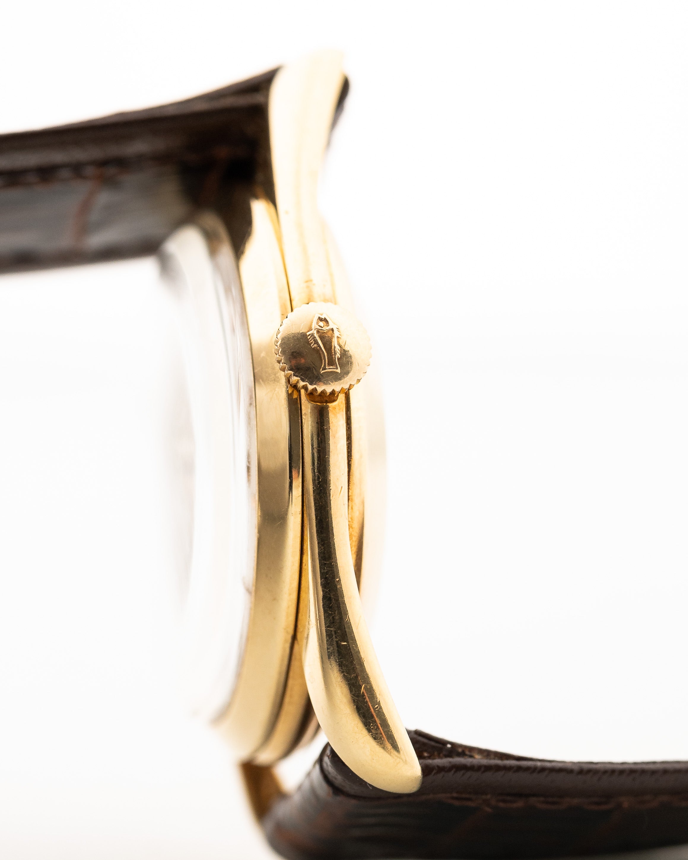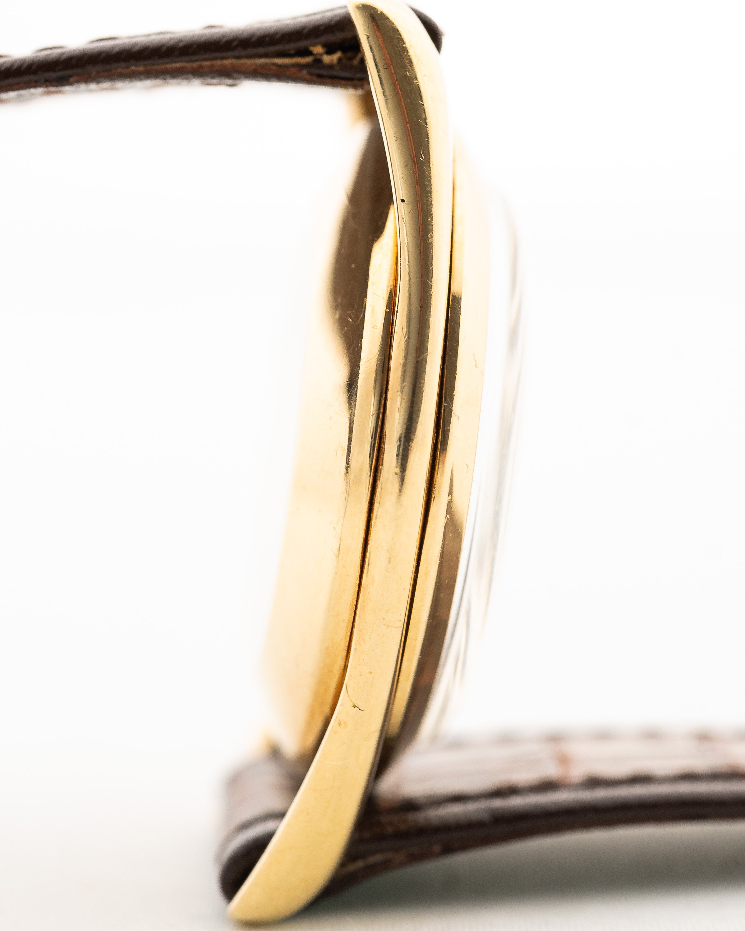 • 3-teiliges Gehäuse aus 18k Gelbgold mit Schnappverschluss auf dem Gehäuseboden