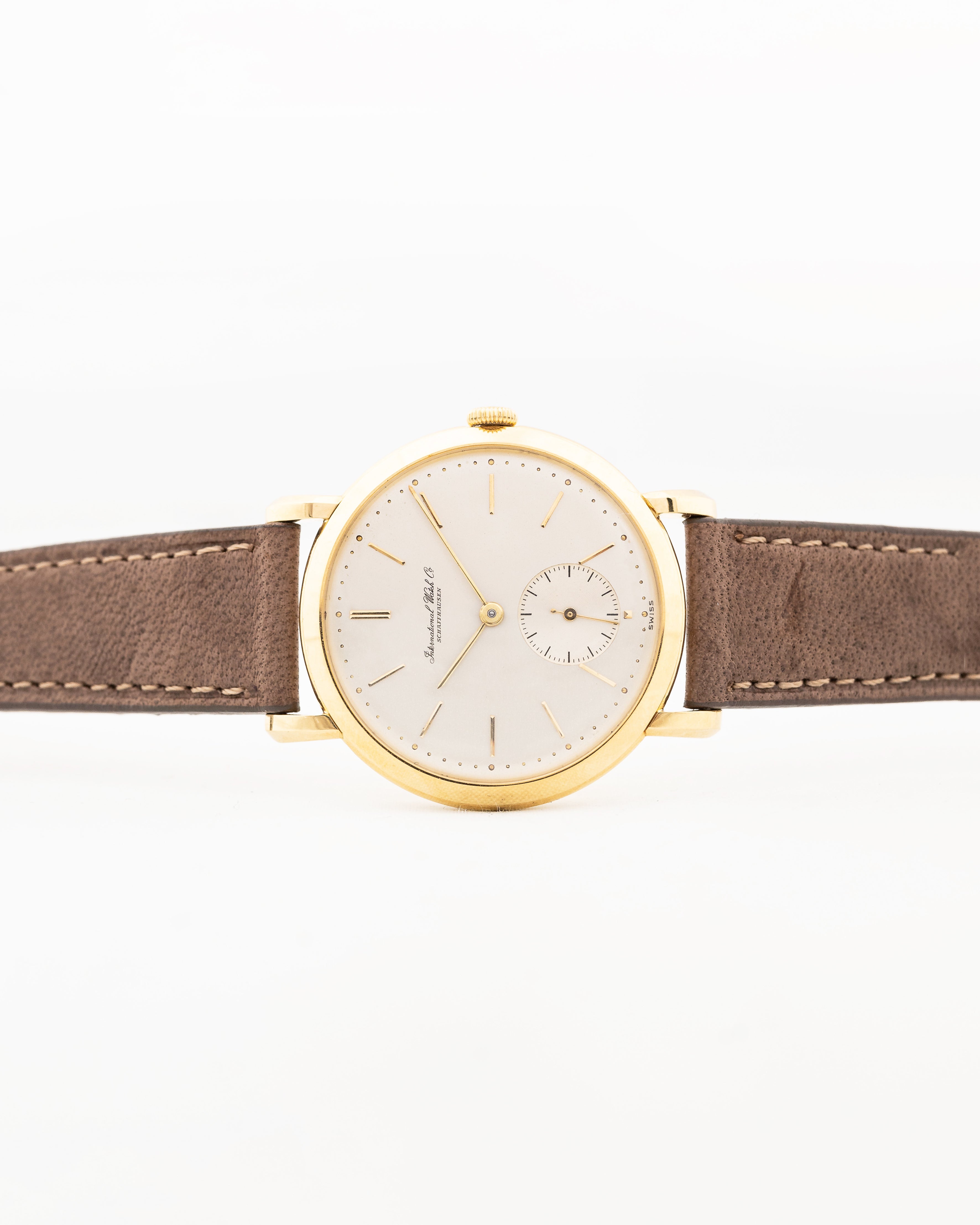 Diese atemberaubende IWC-Kleideruhr verfügt über ein klassisches Subsekunden-Design, goldene Stabzeiger und Stundenmarkierungen, ein sauberes silberfarbenes Zifferblatt und ist mit dem viel gerühmten Kaliber 88 ausgestattet. IWC ist seit langem ein Synonym für die Suche nach der Schönheit in der Schlichtheit, und dieses Exemplar verkörpert diesen Ethos mit seinem Gehäuse aus 18 Karat Gelbgold mit einem Durchmesser von 36,5 mm.