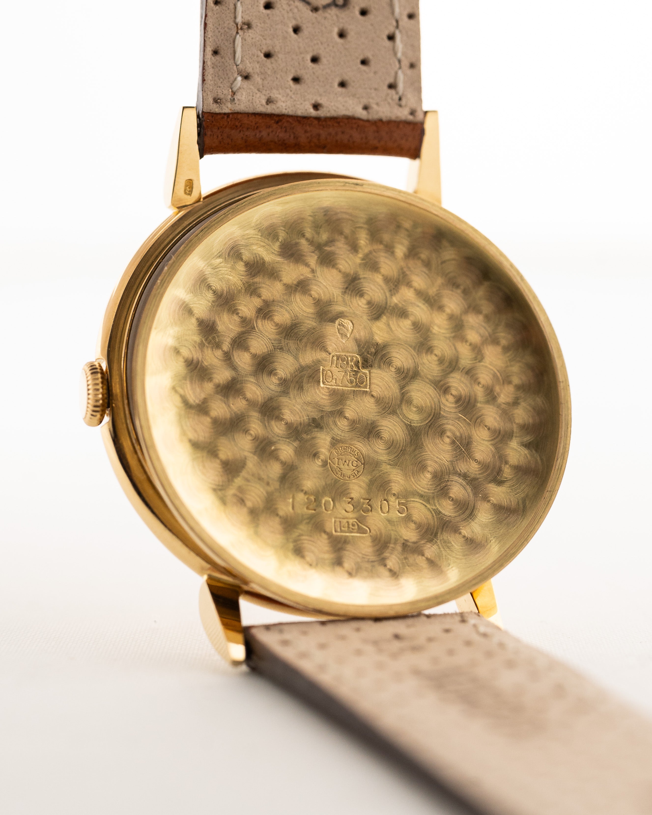 IWC hat schon früh eine breite Palette von Armbanduhren hergestellt, die von Kleideruhren bis hin zu Fliegeruhren reicht. Dieses Exemplar aus 18 Karat Gelbgold im Calatrava-Stil mit Spider-Lugs wäre eine Konstante in jedermanns Sammlungen, zumal es in einem hervorragenden Zustand und mit einem schönen honigfarbenen Zifferblatt daherkommt.