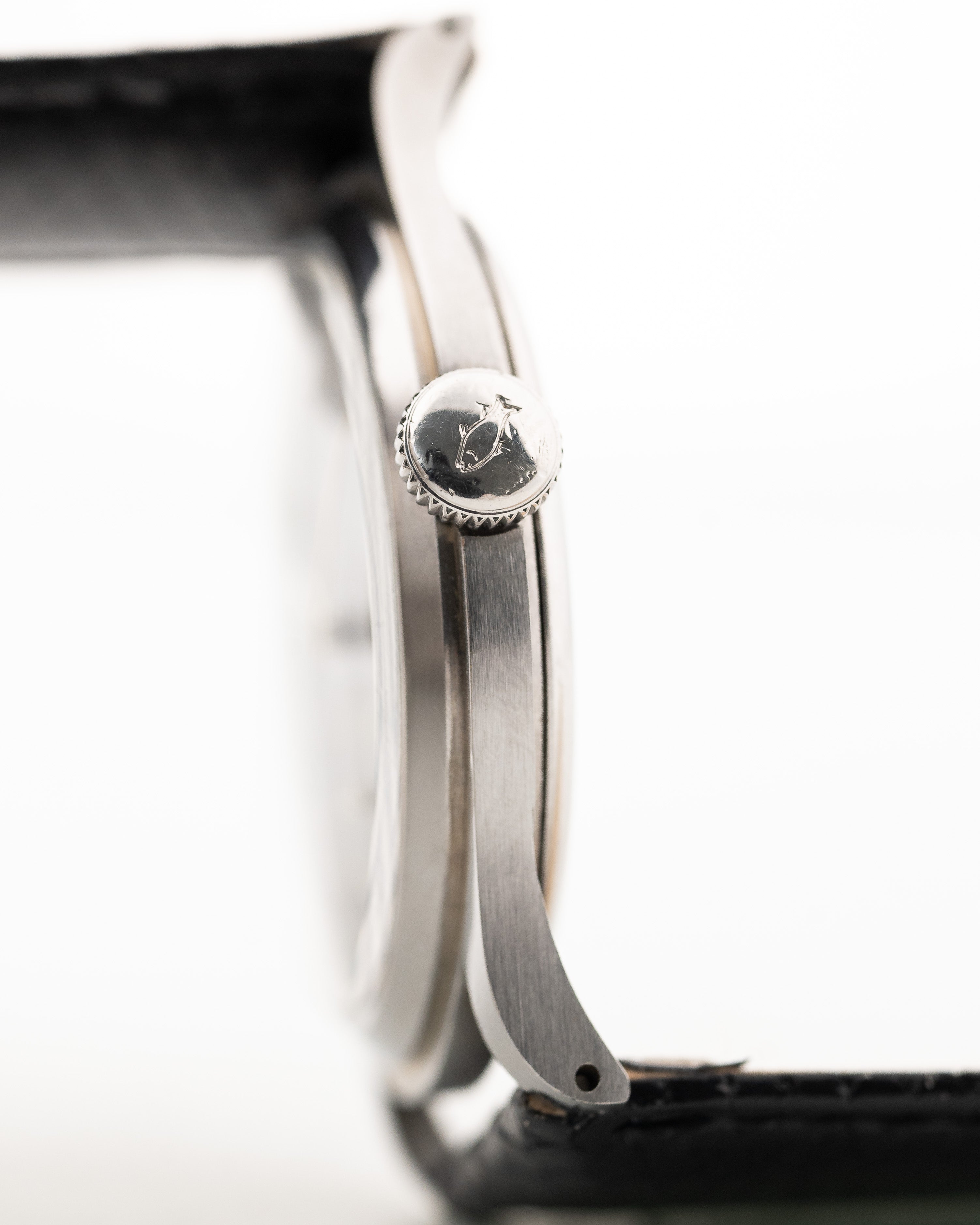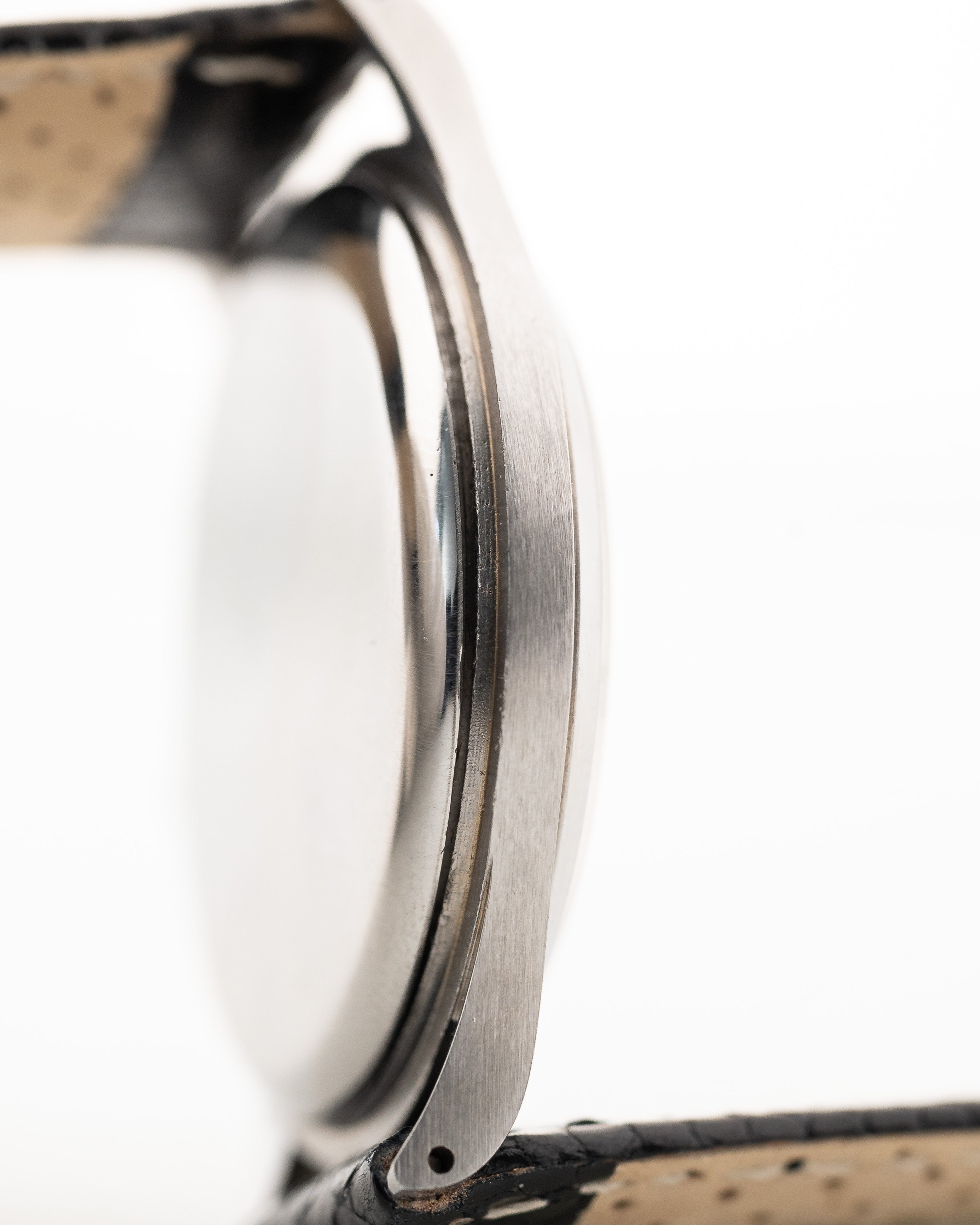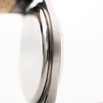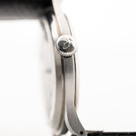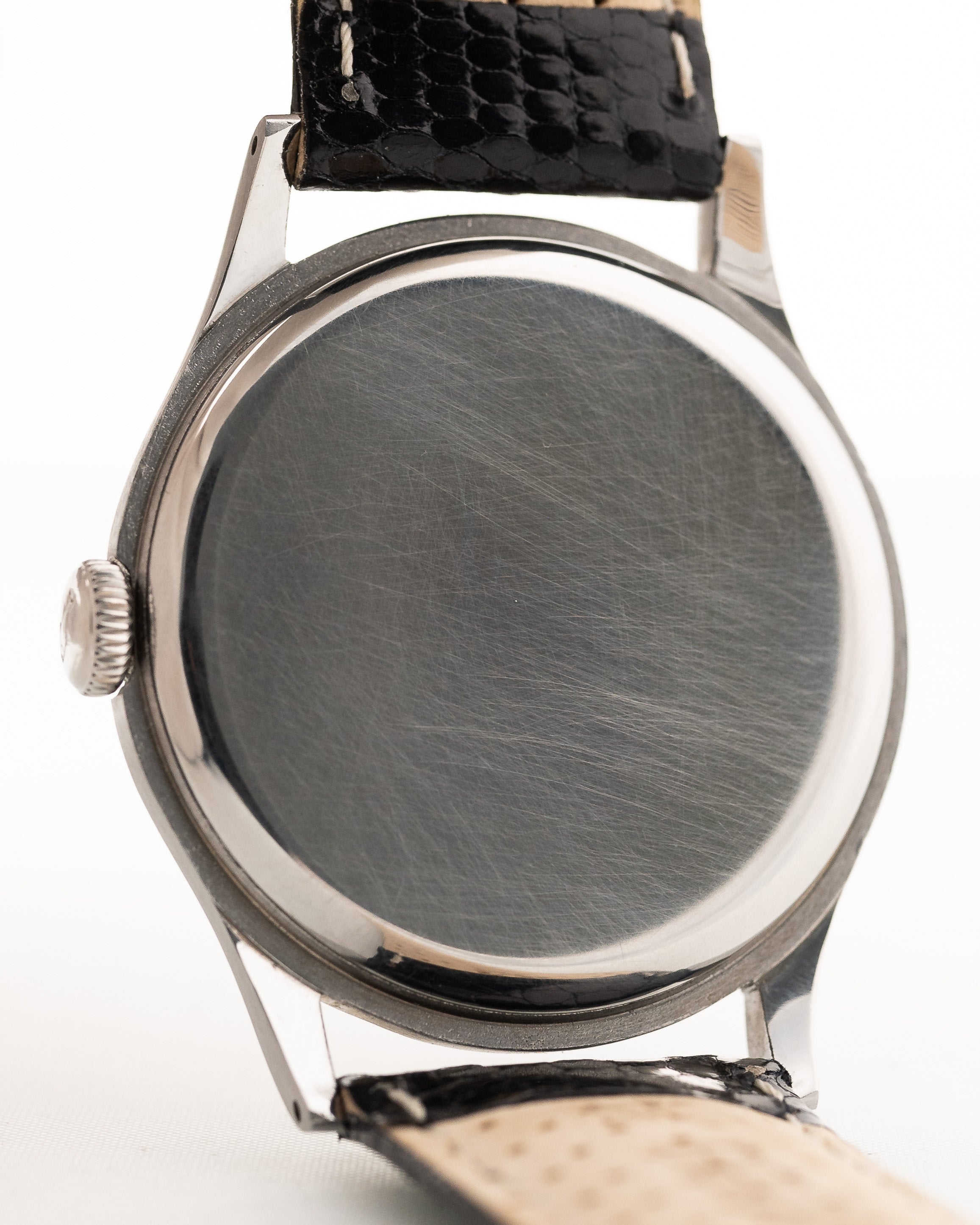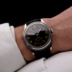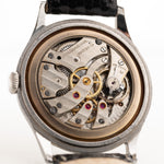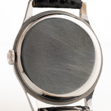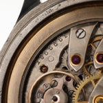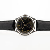 Die 37,5 mm große Jumbo-Uhr, die in der Sammlergemeinde als "Hermet" bekannt ist, befindet sich in einem sehr guten Zustand und hat eines der seltenen schwarzen vergoldeten Zifferblätter.