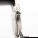 Diese kaum je gesehene übergroße IWC ist ein wunderbares Beispiel für die zeitlose Eleganz von Vintage-Armbanduhren aus den 1940er Jahren. Die Uhr, bekannt als "Hermet", hat einen dicht verschlossenen Gehäuseboden und eine eingesetzte Krone, die sie vor Feuchtigkeit und Staub schützt.