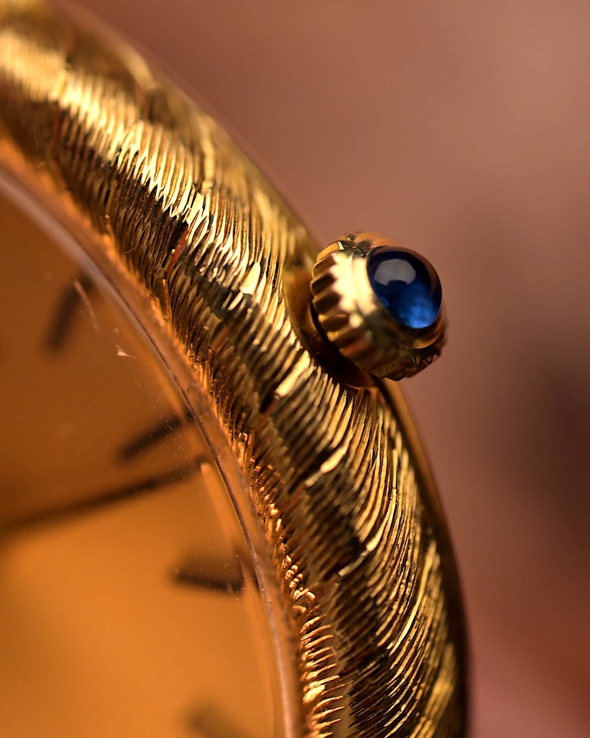 - Originalzeiger und Krone mit blauem Saphir-Cabochon