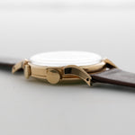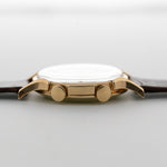 Bei diesem Exemplar handelt es sich um die Handaufzugsversion von 1951. Sie zeichnet sich durch ein klares Design ohne Datum, einen sehr schönen goldenen Ziffernring und ein atemberaubendes Gelbgoldgehäuse mit schönen Spider Lugs aus.