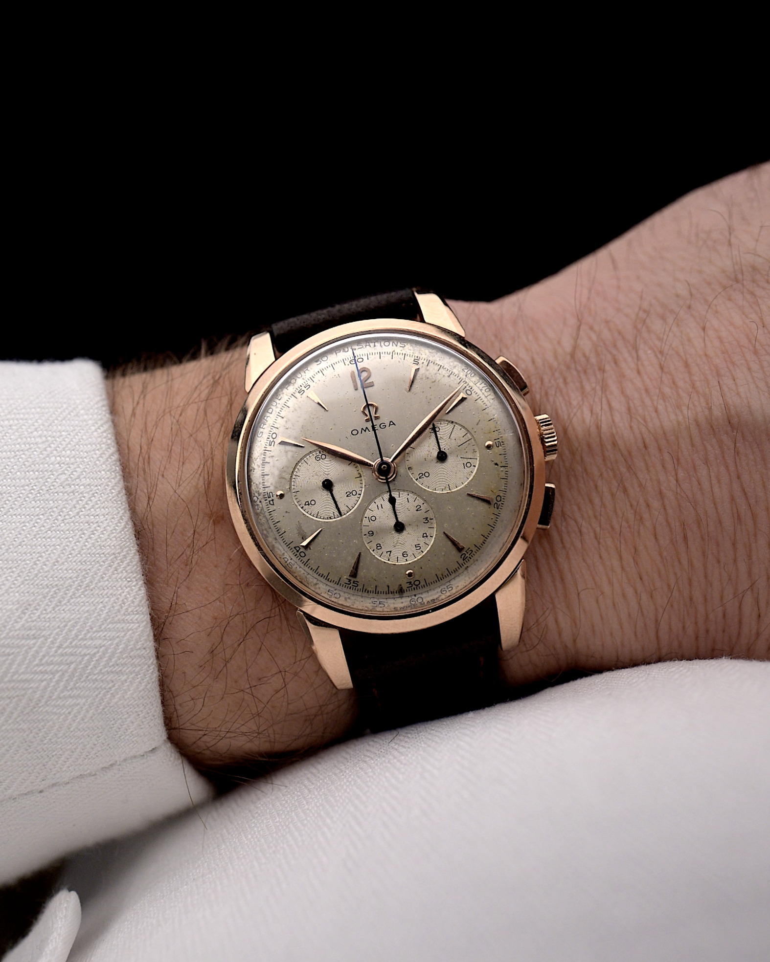 • sehr leichte und gleichmäßige Patina auf dem gesamten Zifferblatt