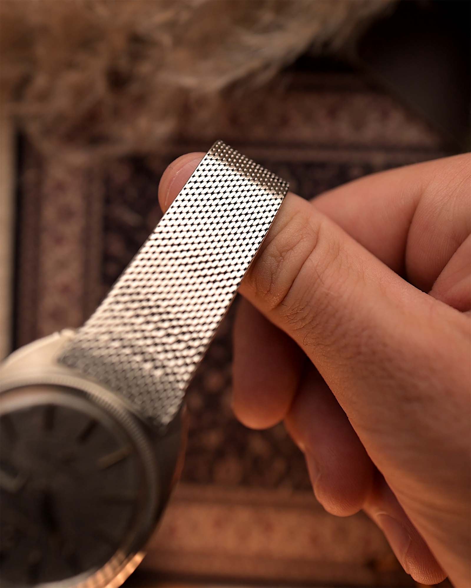 • original 18k white gold milanese bracelet is fitting up to a 21 cm and is not adjustable, but detachable / 1.5 mm thick