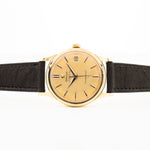 Dieser kompakte und schöne Omega Constellation Automatik-Chronometer hat alles, was Sie sich von einer Damenuhr wünschen: Ein 35 mm großes Gehäuse aus 18 Karat Gelbgold, eine Zentralsekunde, ein wunderschönes gelbgoldenes Zifferblatt und die seltenen schlanken Stabindexe mit Onyx-Intarsien. Die Constellation wurde erstmals 1952 vorgestellt und war Omegas Antwort auf die Rolex Datejust.