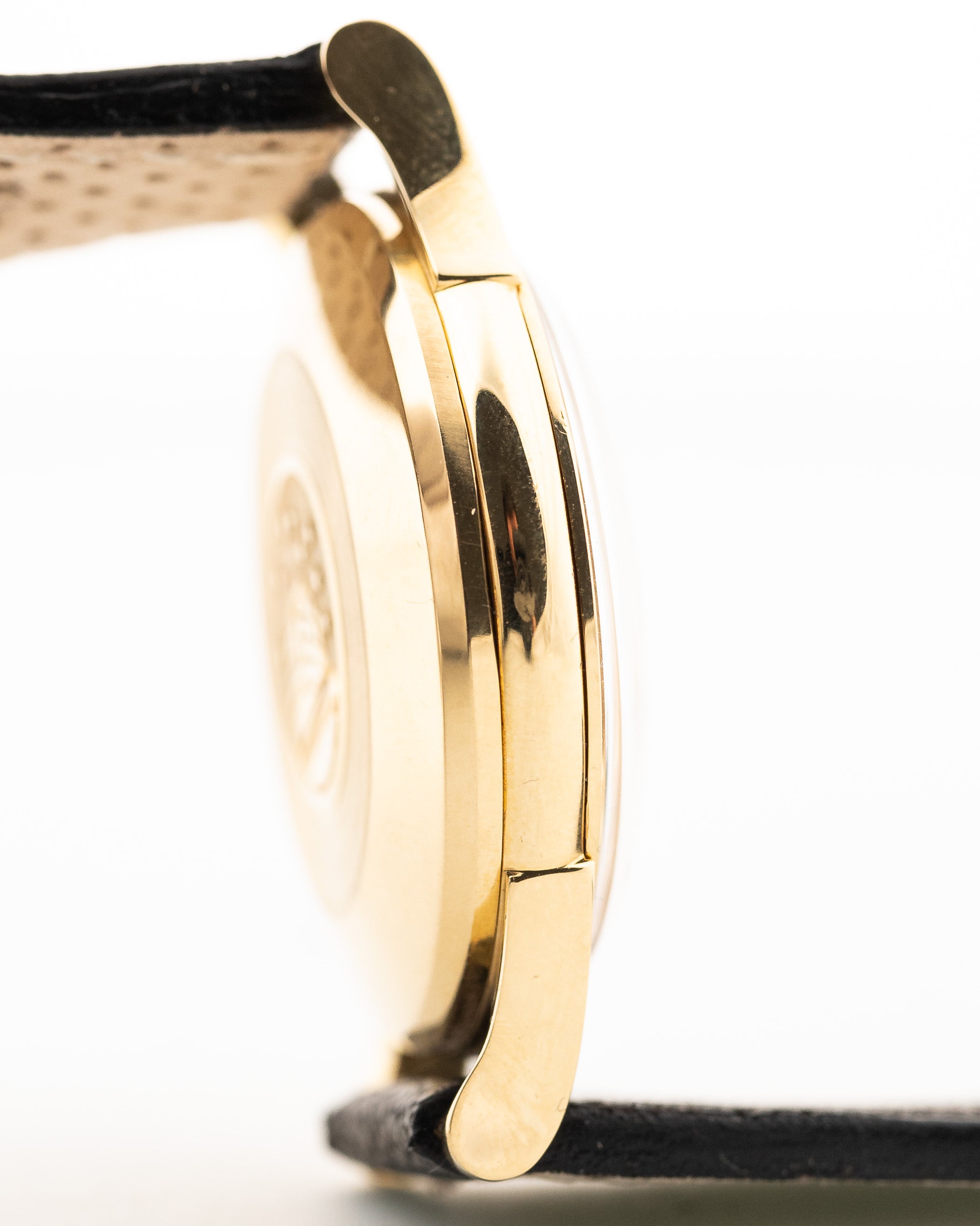 • 3-Gehäuse aus 18 Karat Gelbgold mit verschraubtem Gehäuseboden