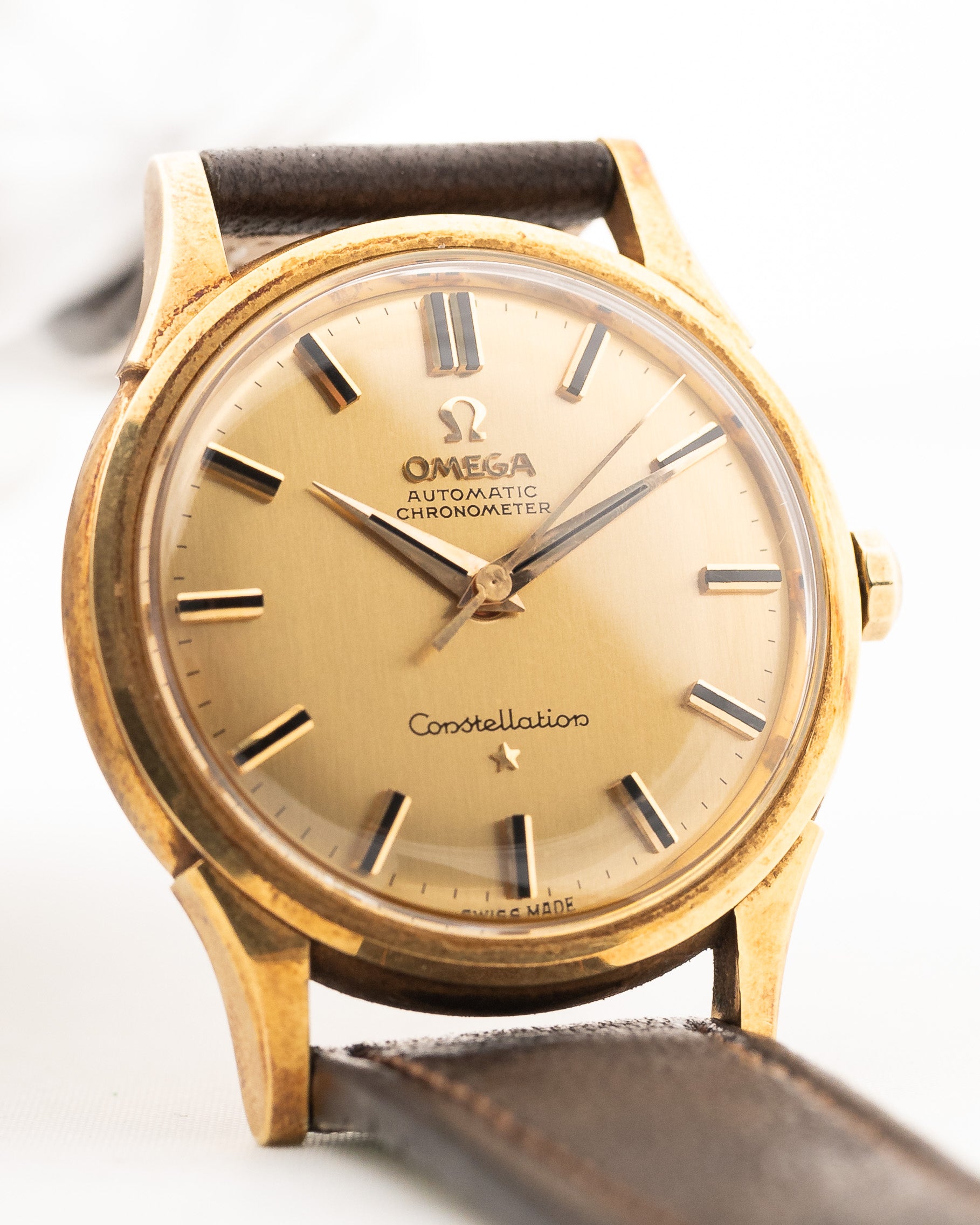Diese gut proportionierte, schlichte und klassische Constellation verfügt über einen verschraubten Gehäuseboden, das Omega Automatik-Chronometer Kaliber 551 und großartige, leicht nach unten gedrehte Anstöße.