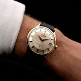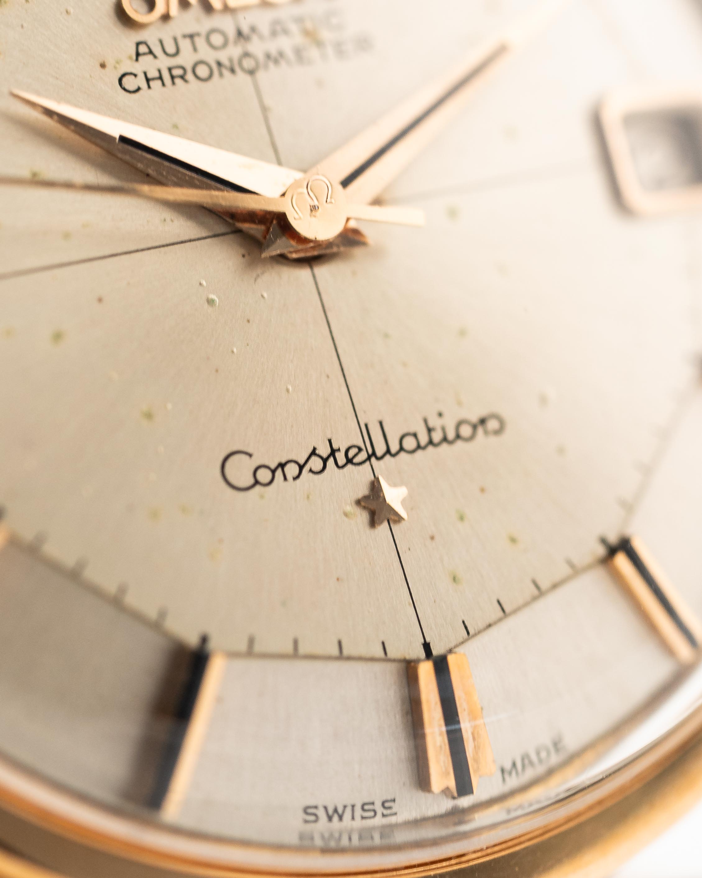 Diese gut proportionierte, schlichte und klassische Constellation verfügt über einen verschraubten Gehäuseboden, das Omega Automatik-Chronometer Kaliber 561 und großartige, leicht angewinkelte Anstöße.