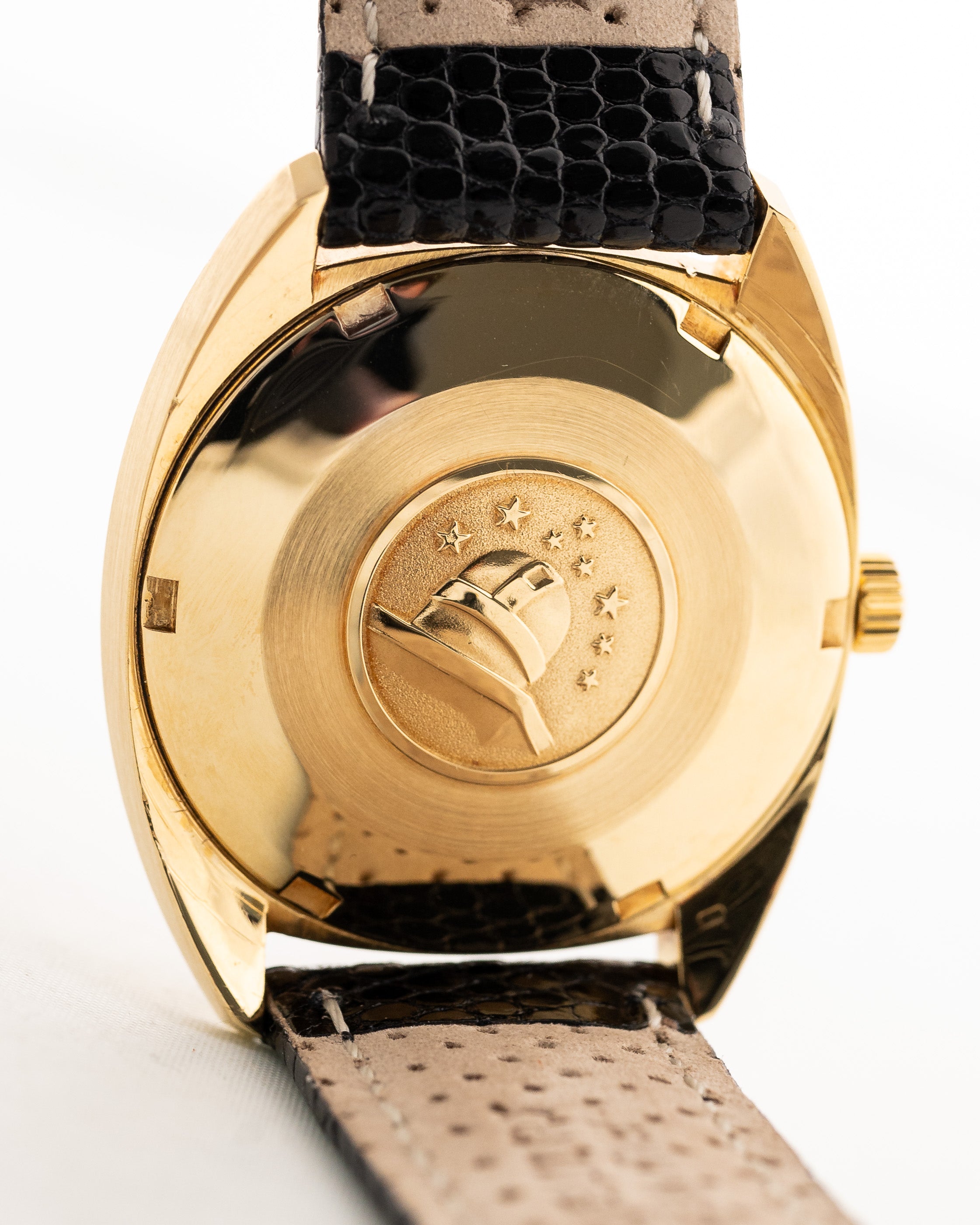 Diese wohlproportionierte, schlichte und klassische Constellation verfügt über einen verschraubten Gehäuseboden, das Omega Automatik-Chronometer Kaliber 564 und wird mit der Originalbox und den Originalpapieren geliefert.