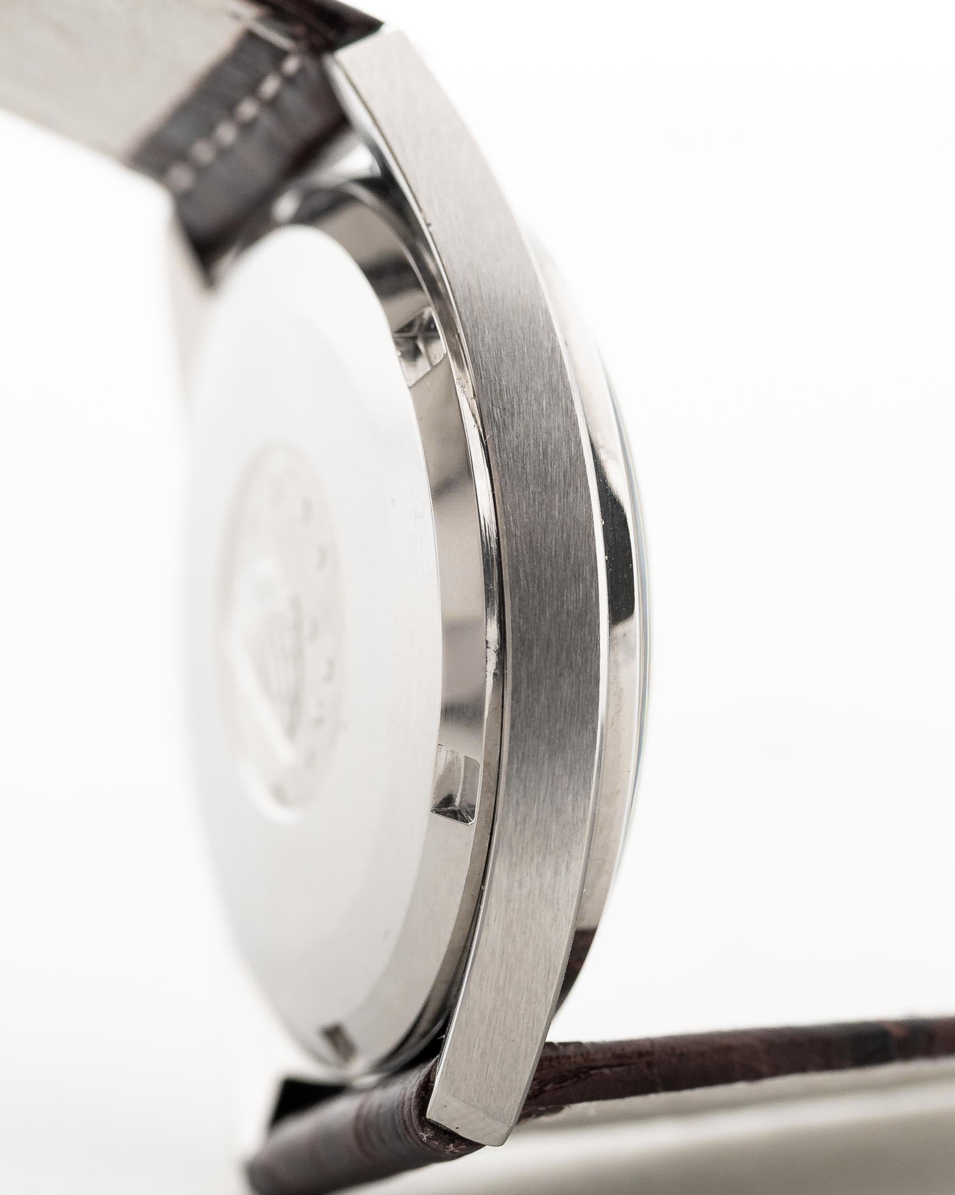 Diese wohlproportionierte, schlichte und klassische Constellation verfügt über einen verschraubten Gehäuseboden und das Omega Automatik-Chronometer Kaliber 564.
