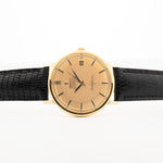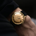 Dieser kompakte und schöne Omega Constellation Automatik-Chronometer hat alles, was Sie sich von einer Damenuhr wünschen: 36 mm Gehäuse aus 18 Karat Gelbgold, Zentralsekunde, ein wunderschönes gelbgoldenes Zifferblatt und die seltenen schlanken Stabindexe mit Onyxeinlage. Die Constellation wurde erstmals 1952 vorgestellt und war Omegas Antwort auf die Rolex Datejust.