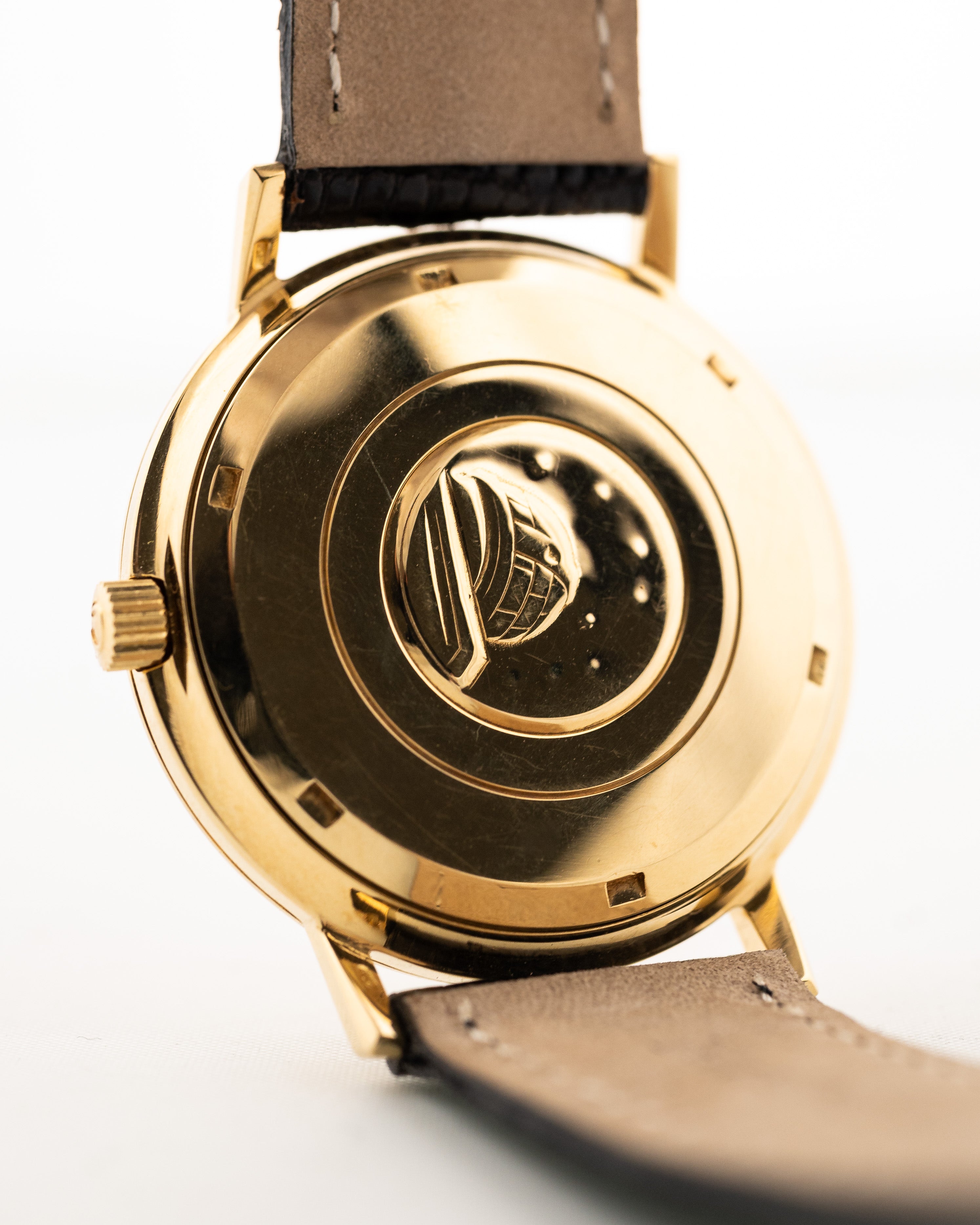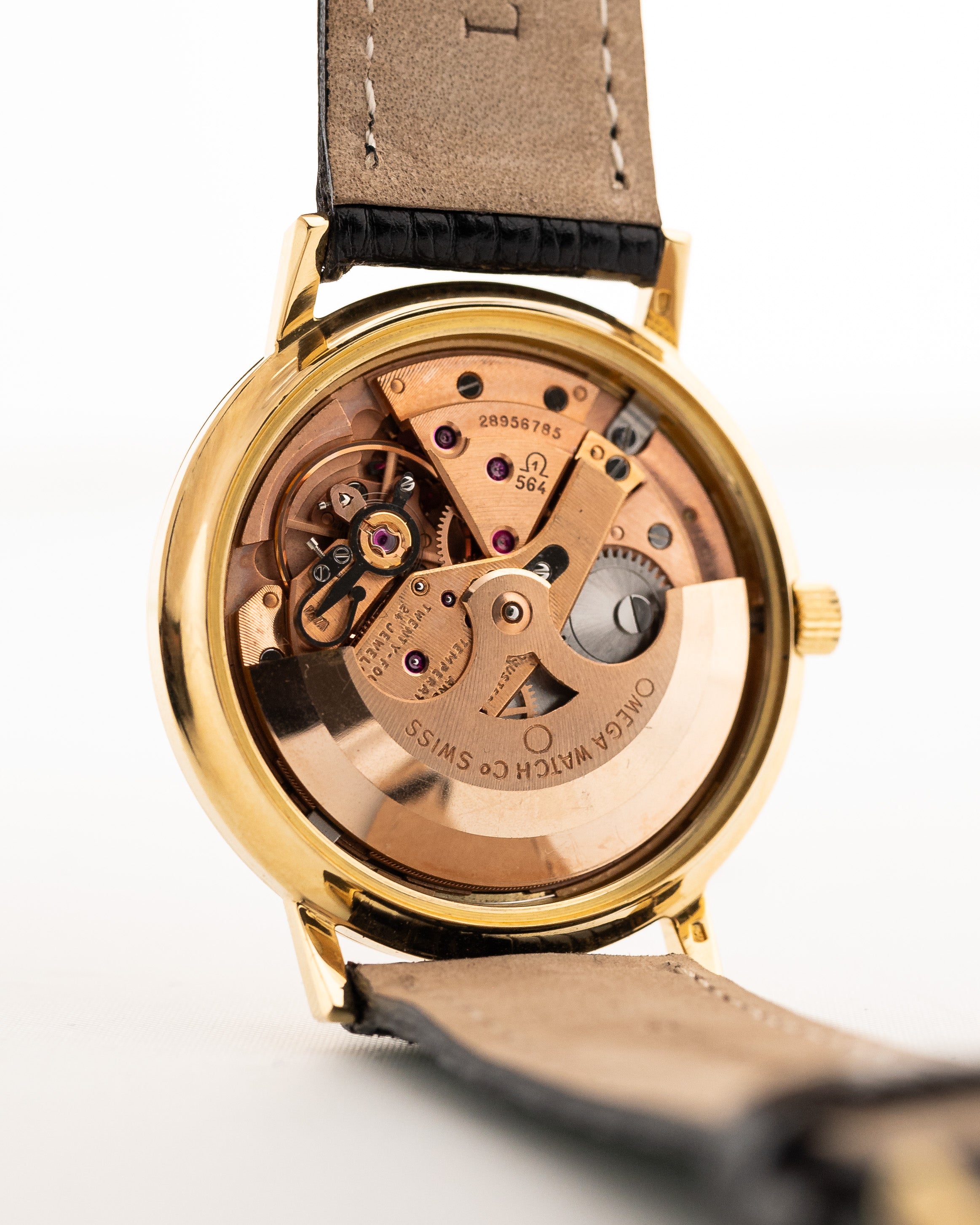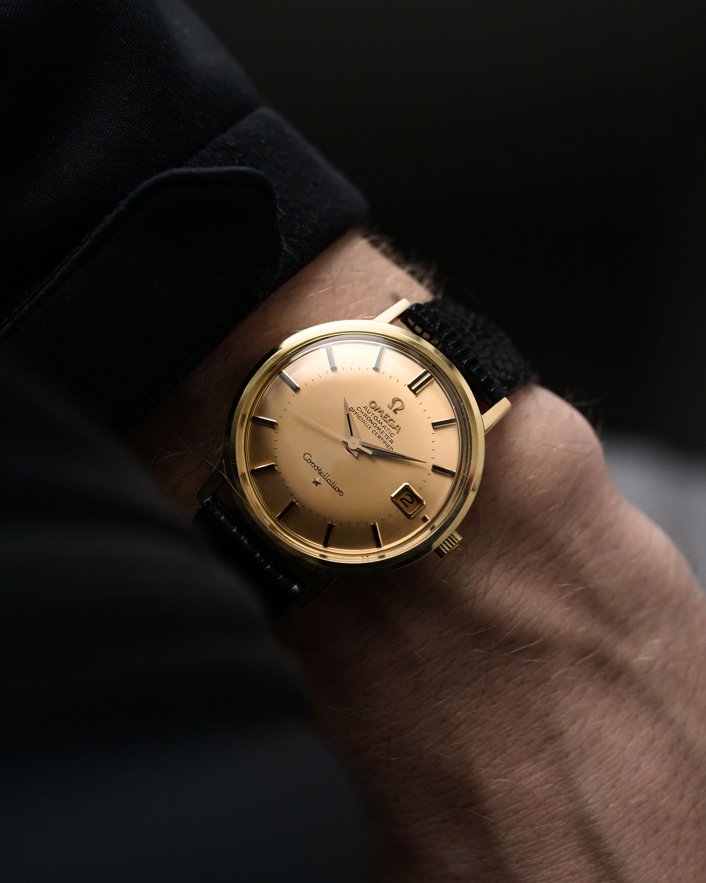 Diese gut proportionierte, schlichte und klassische Constellation verfügt über einen verschraubten Gehäuseboden, das Omega Automatik-Chronometer Kaliber 564 und großartige, leicht nach unten gedrehte Anstöße.