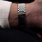 • das seltene originale Omega-Edelstahlarmband "Perle des Reises" passt bis zu einem Handgelenkumfang von 18 cm / 3,1 mm Dicke