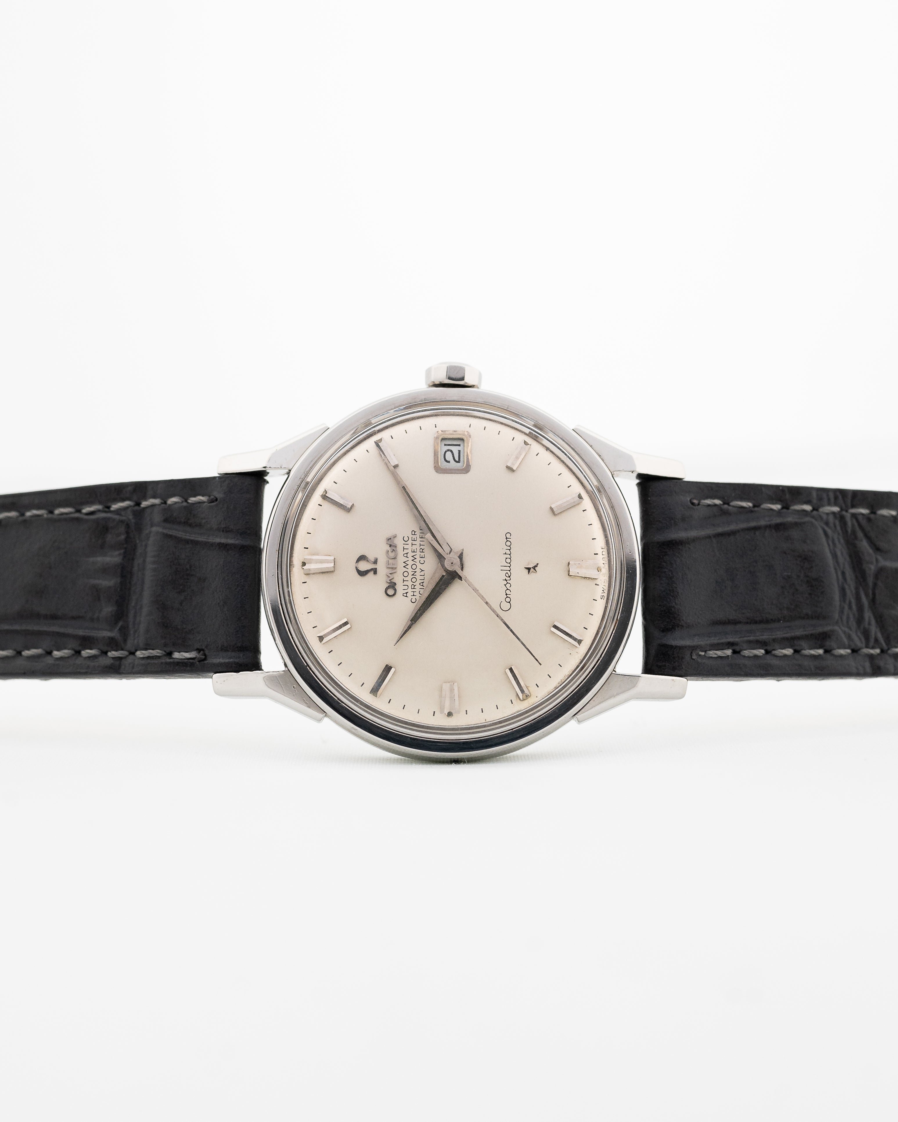 Diese gut proportionierte, schlichte und klassische Constellation verfügt über einen verschraubten Gehäuseboden, das Omega Automatik-Chronometer Kaliber 561 und ist insgesamt in einem hervorragenden Zustand.