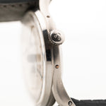 Die Omega Cosmic wurde 1947 eingeführt und war bis 1956 die prestigeträchtigste Uhr im Katalog der Marke. Dieses Exemplar ist eine Referenz 2471-1 aus Edelstahl, misst 35 mm und beherbergt das Omega Cal. 381 Mondphasenwerk.