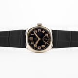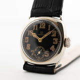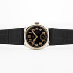 Diese Schönheit verfügt über ein großartiges 0,925er Silber-Kissengehäuse mit einem fantastischen, schwarz glänzenden, vergoldeten Zifferblatt und ist im Art Deco Stil gestaltet.