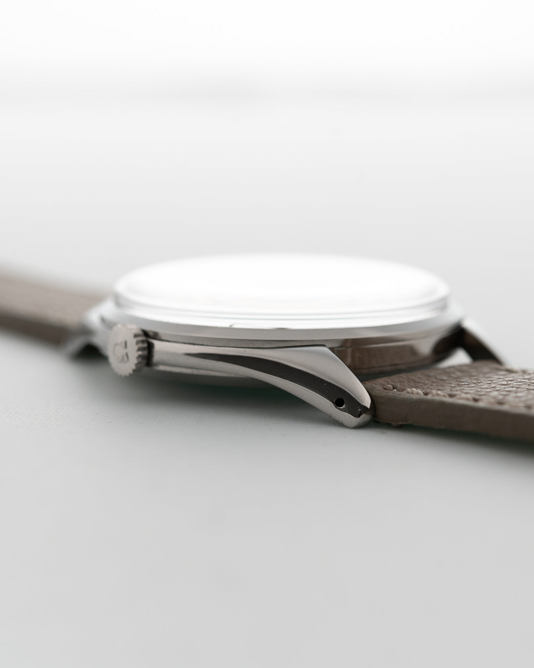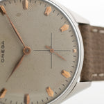Vintage Omegas sind die Könige der schlichten Kleideruhren und diese Wabenversion ist nicht anders. Diese Omega aus dem Jahr 1956 hat alles, was Sie sich von einer Damenuhr wünschen - ein übergroßes 38-mm-Gehäuse, ein großartiges Wabenzifferblatt mit untergeordneter Sekunde und schöne blattförmige Zeiger aus Roségold. Außerdem verfügt sie über sehr elegante, überlagerte Sargindexe aus Roségold und das sehr präzise Omega-Kaliber 266.