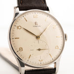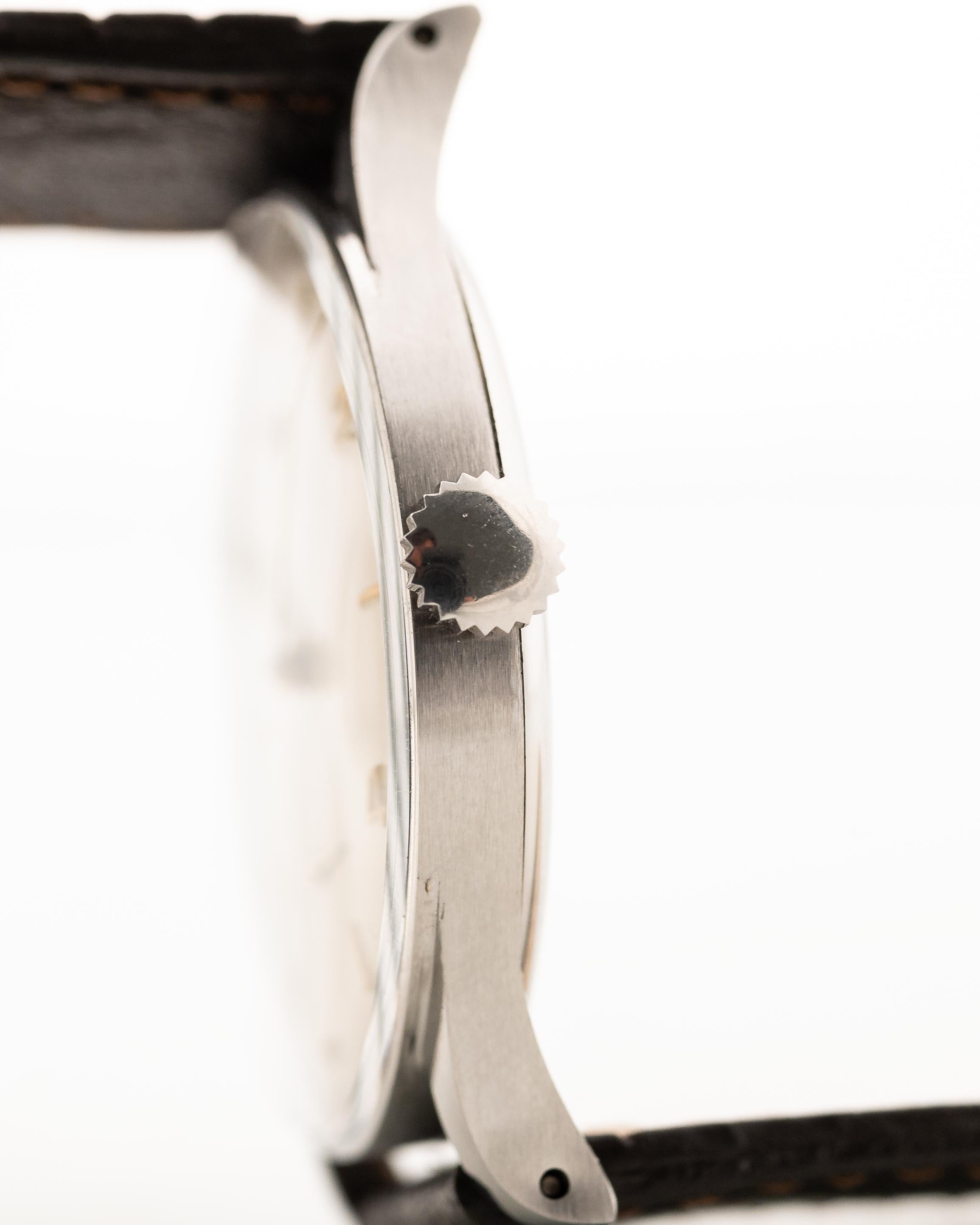 Die 1940er Jahre waren eine gute Zeit für Omega, wie diese schöne Armbanduhr beweist. Dieses Exemplar sieht nicht nur gut aus, sondern ist auch solide. Ausgestattet mit einem riesigen 37,5-mm-Edelstahlgehäuse, nach unten gedrehten Bandanstößen und einem herrlich klaren weißen Zifferblatt ist diese Uhr wirklich unschlagbar.