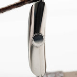 Dies ist nicht die erste Omega Art Deco Dress Watch, in die wir uns verliebt haben. Dieses Exemplar verfügt über ein rechteckiges, tankförmiges Stahlgehäuse und wird durch sein wunderschönes, glänzendes, schwarzes, vergoldetes Zifferblatt mit arabischen Art Deco-Ziffern, Sekundenanzeige und einem wunderbaren, einzigartigen Goldzeiger noch attraktiver. Und das Tüpfelchen auf dem i ist der großartige Zustand.