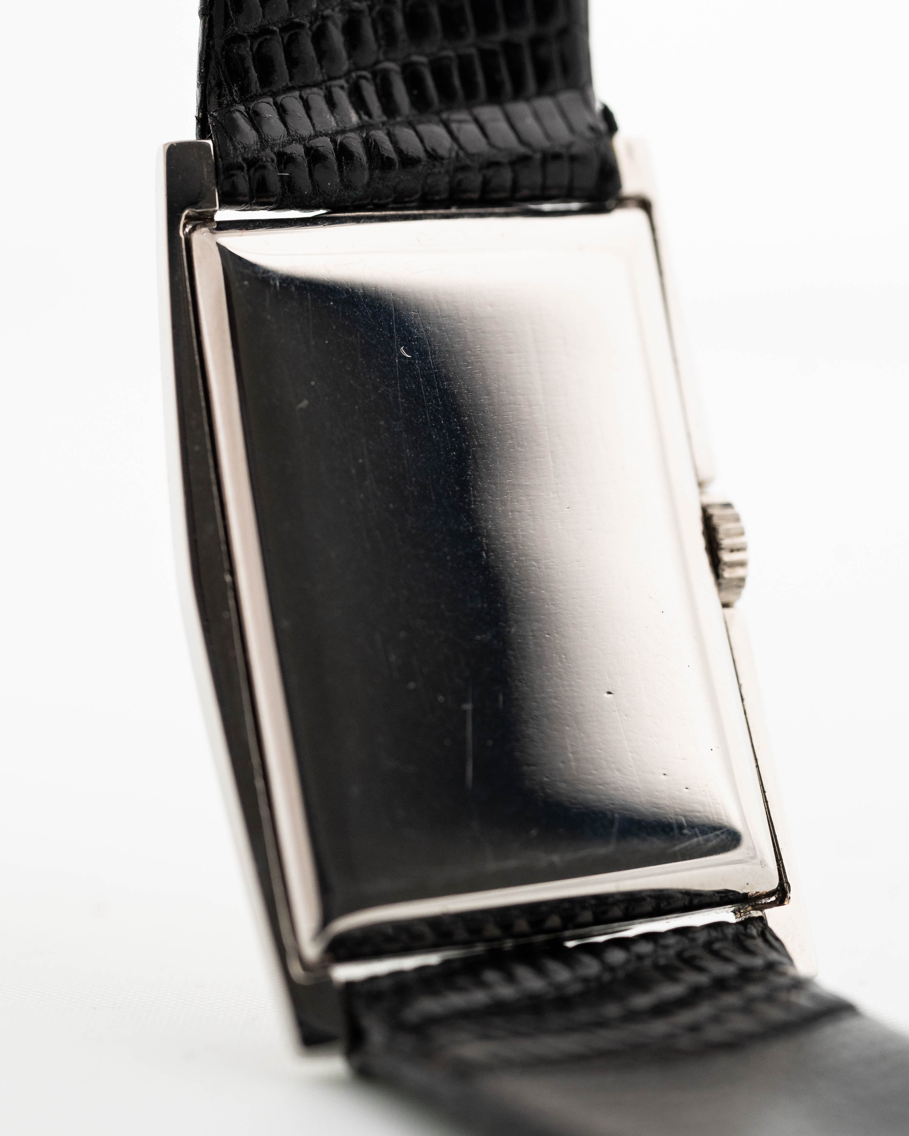 Dies ist nicht die erste Omega Art Deco Dress Watch, in die wir uns verliebt haben. Dieses Exemplar verfügt über ein riesiges rechteckiges Stahlgehäuse und wird durch sein wunderschönes, leicht goldfarbenes Zifferblatt mit arabischen Art-Déco-Ziffern, kleiner Sekunde und einem wunderschönen, einzigartigen blauen Zeiger noch attraktiver. Und das Tüpfelchen auf dem i ist der fast nos Zustand!