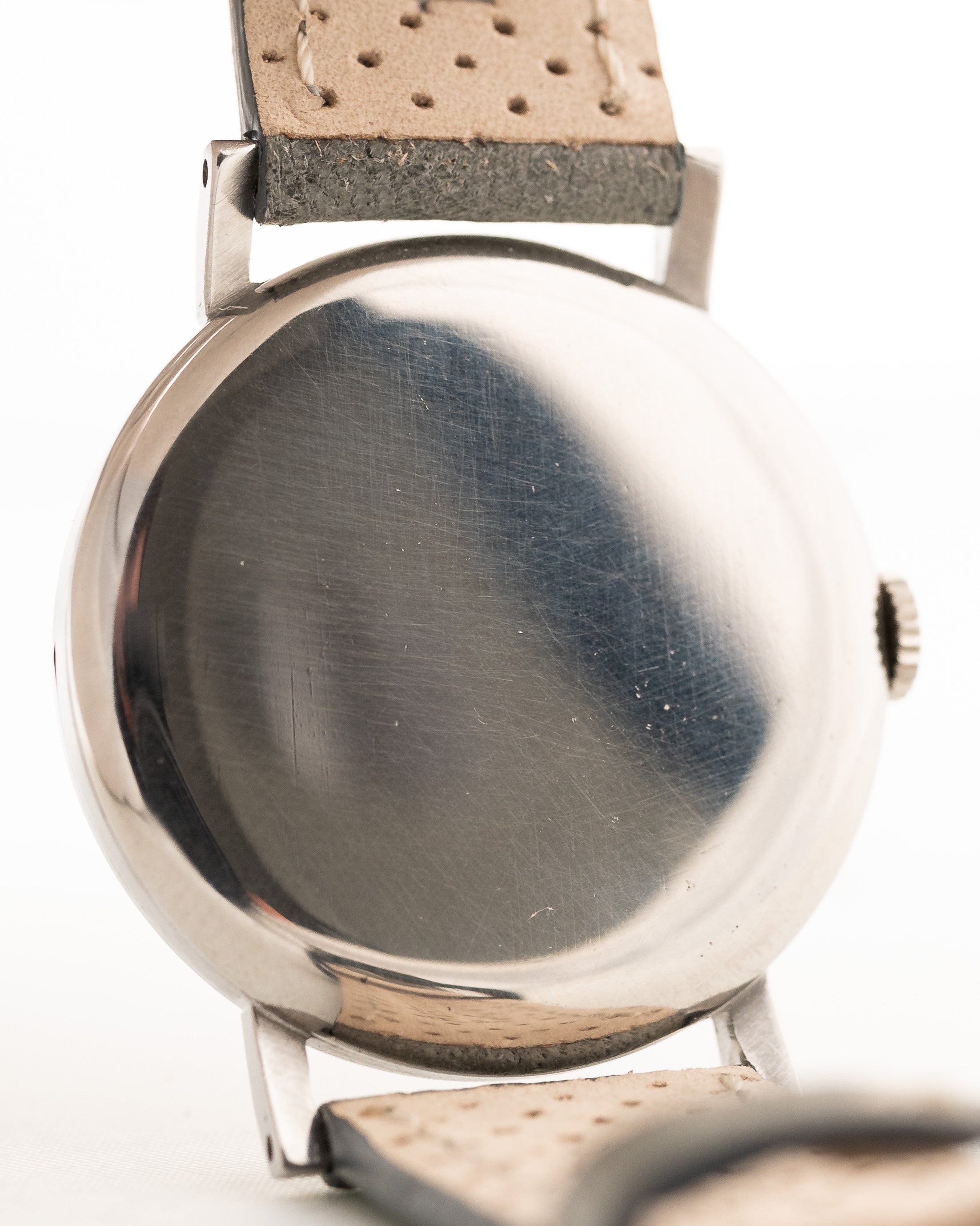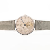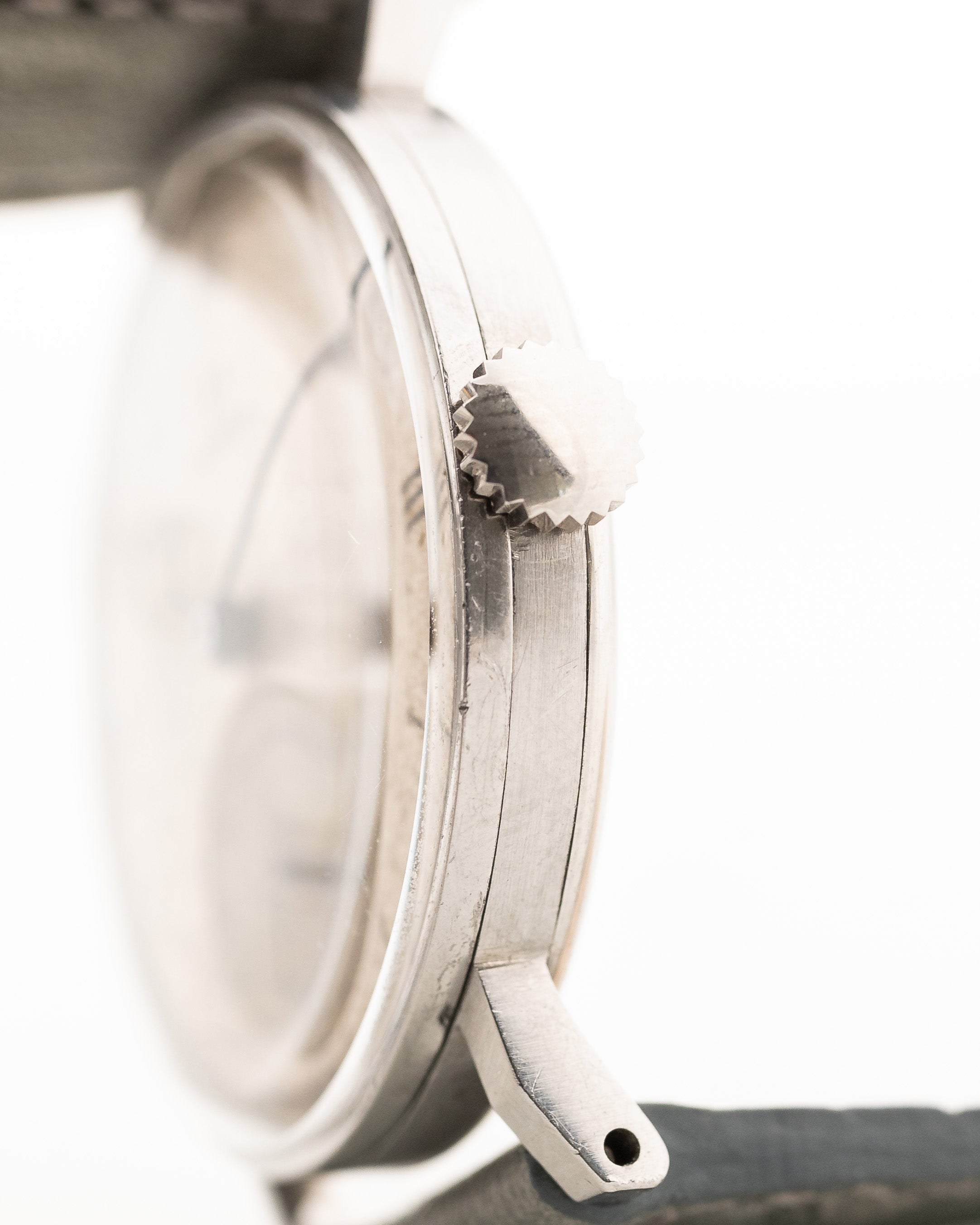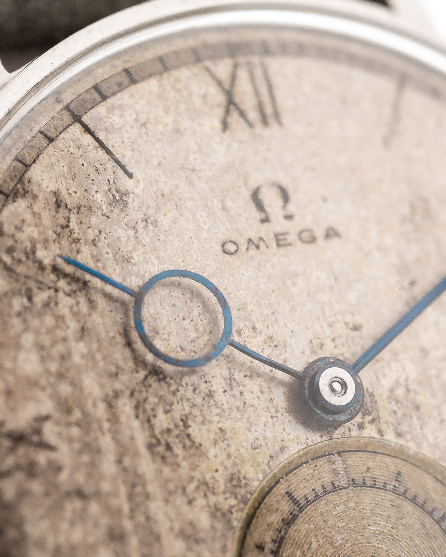 Dies ist nicht die erste Omega Art Deco Dress Watch, in die wir uns verliebt haben. Dieses Exemplar verfügt über ein 35-mm-Stahlgehäuse und wird durch sein wunderschönes Zifferblatt mit römischen Art-Déco-Ziffern, einer Sekundensekunde und einem wunderschönen, einzigartigen blauen Pontifex-Zeiger noch attraktiver gemacht.
