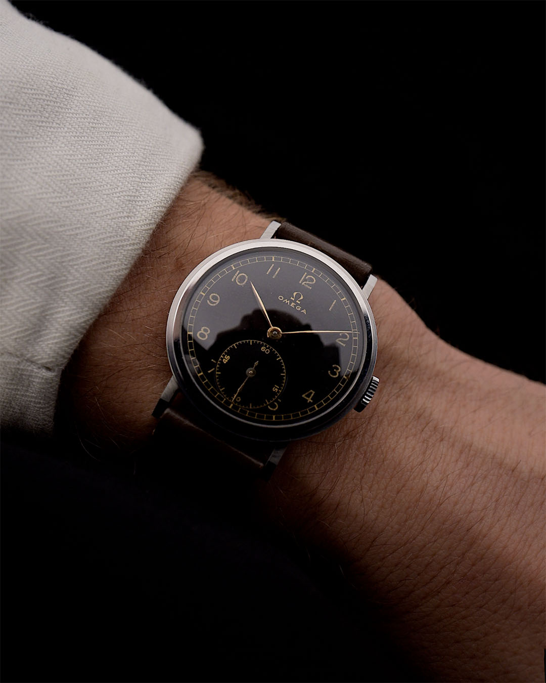 Eine Omega aus den 30er Jahren in gutem Zustand zu finden ist schwierig, aber eine mit einem schönen glänzenden schwarzen Zifferblatt mit arabischen Ziffern zu finden ist fast unmöglich.