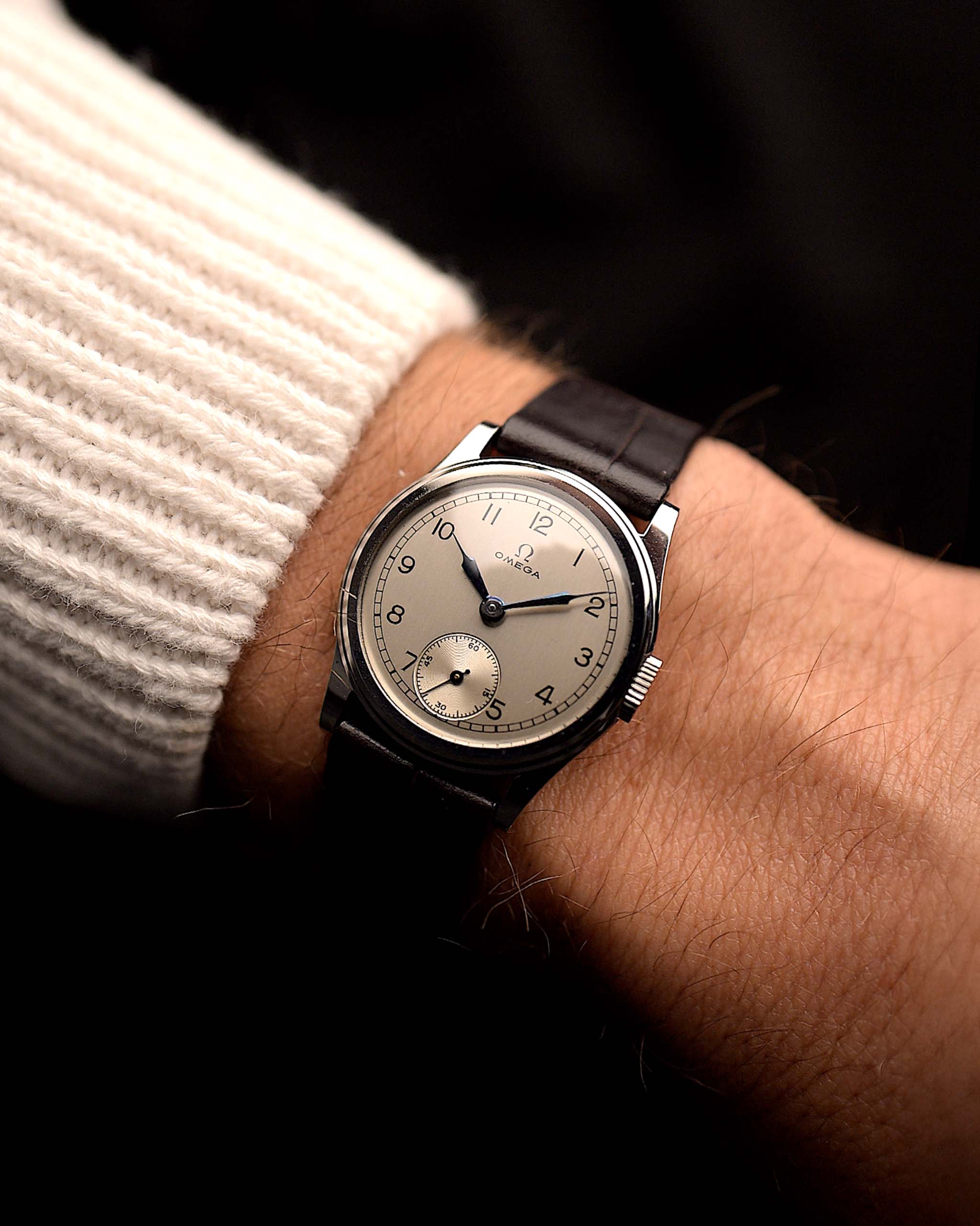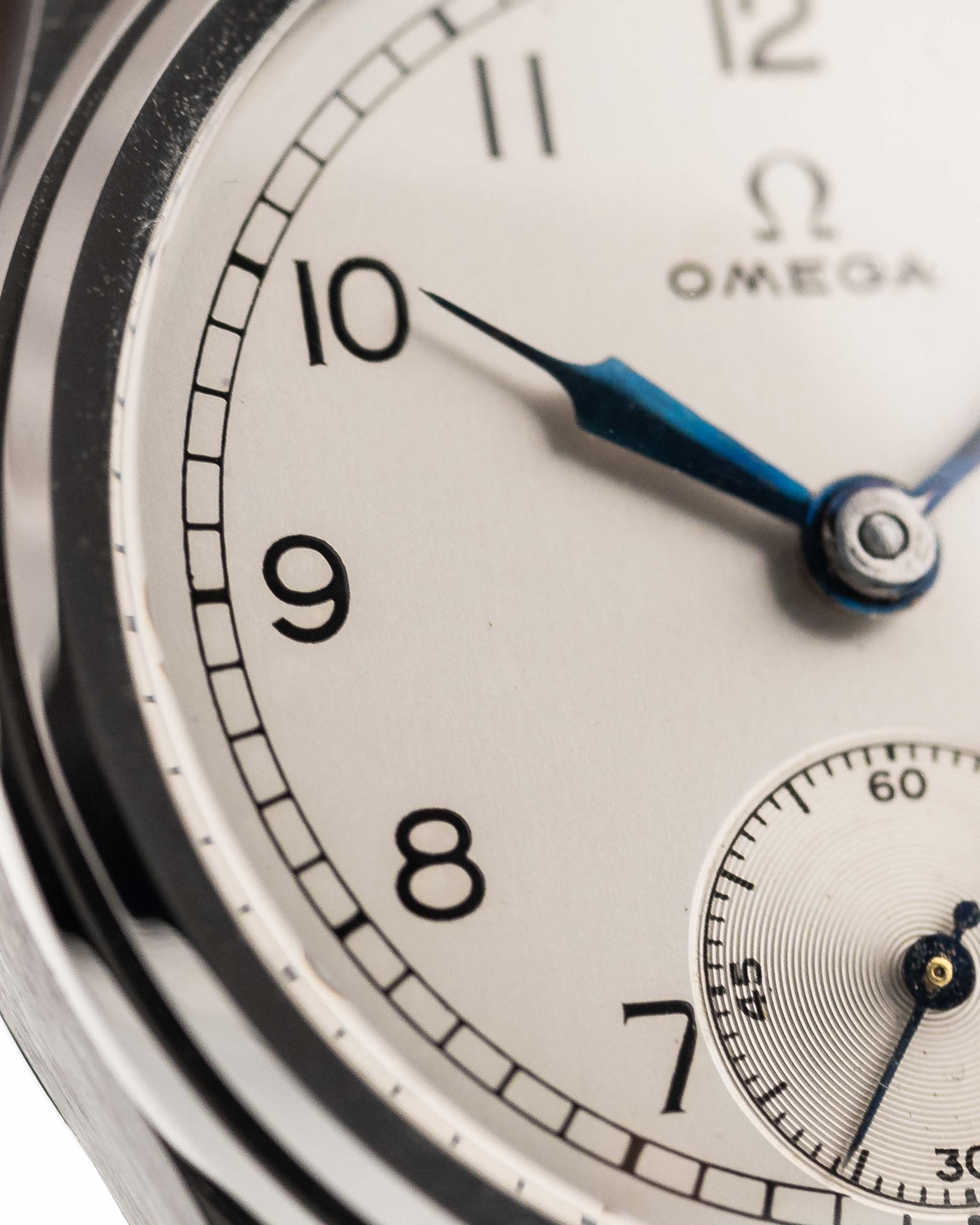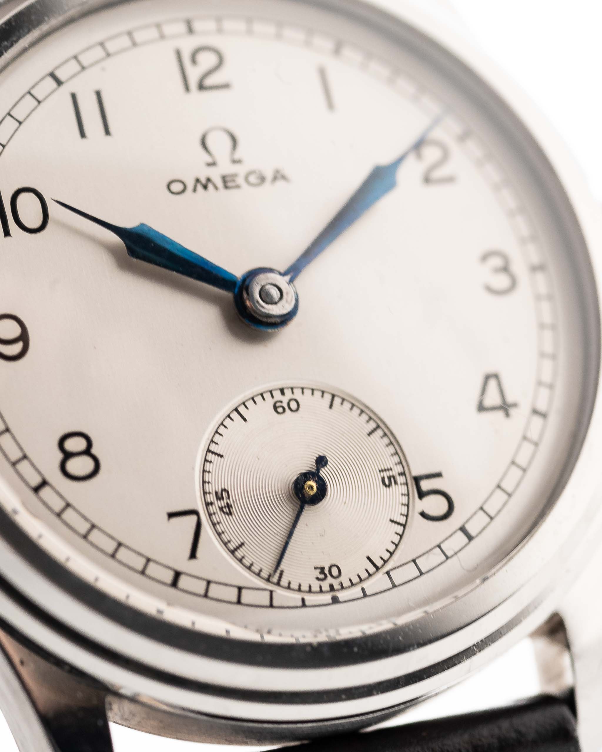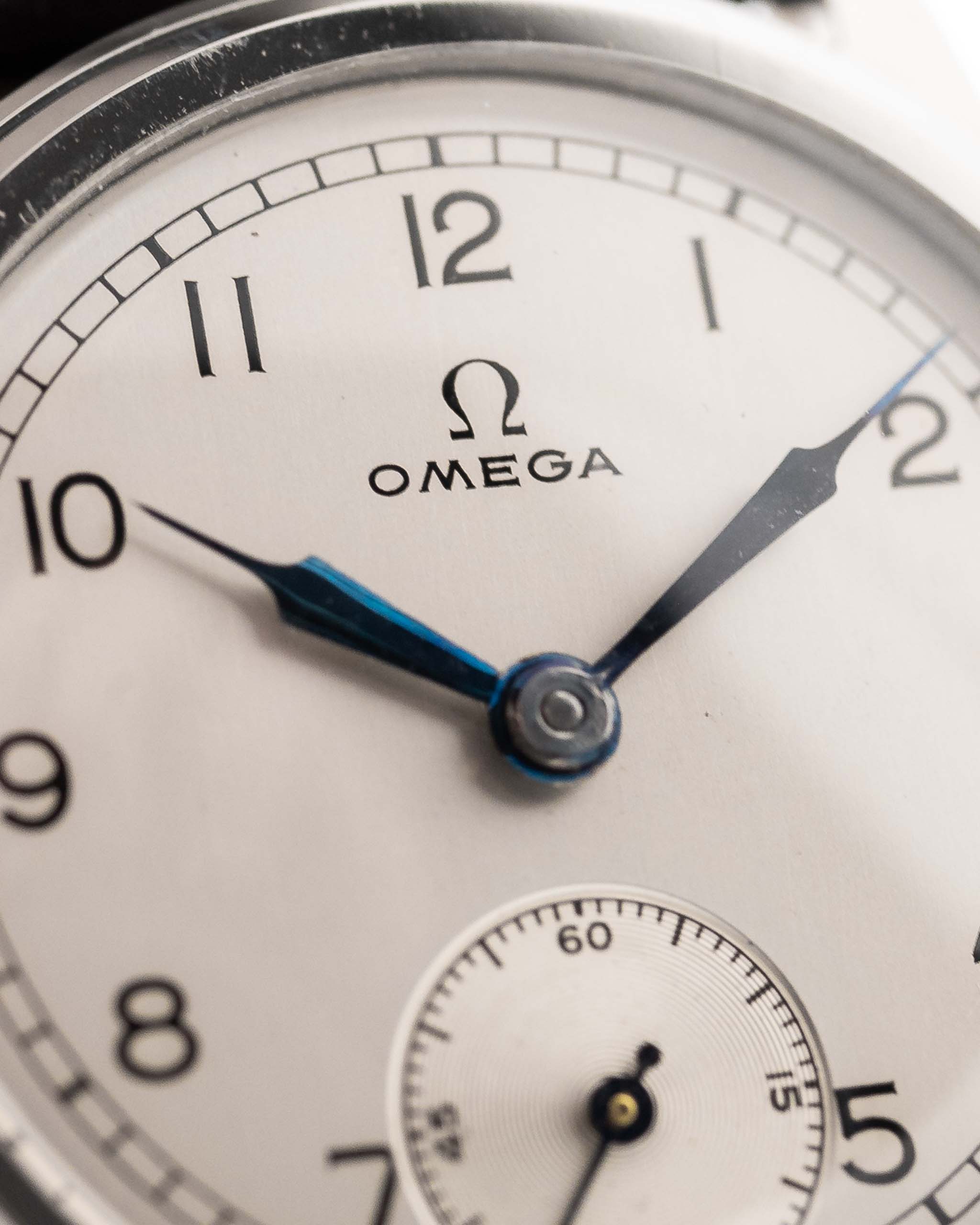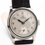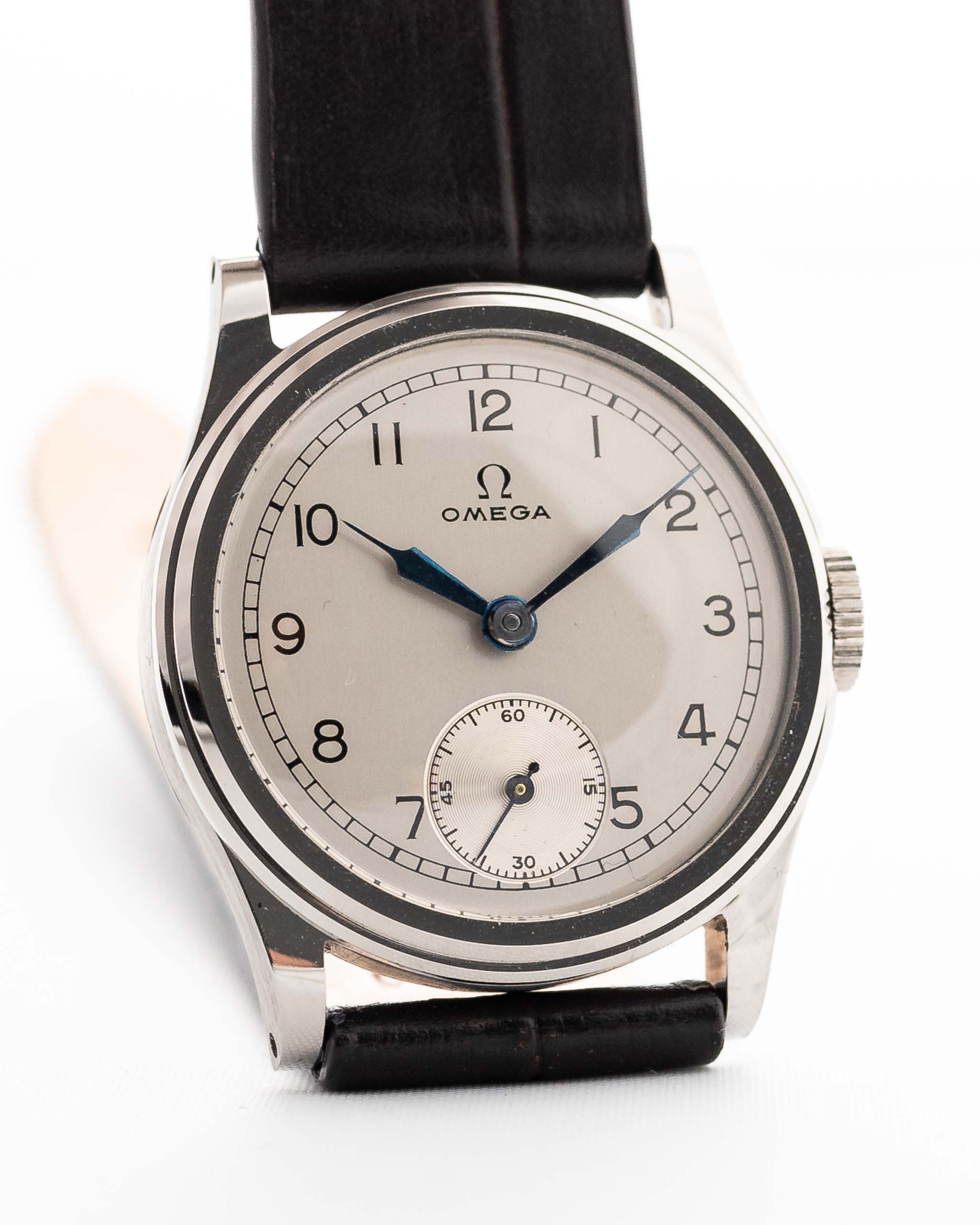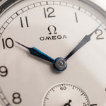 Ein weiterer seltener Omega-Fund aus den 30er Jahren in unglaublichem Zustand. Sauberes silbernes Zifferblatt, arabische Ziffern, gebläute Stahlspritzenzeiger und kleine Sekunde bei sechs - eine Komposition von Eleganz.