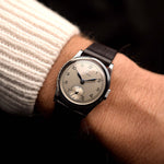 Diese Schönheit zeichnet sich durch ein scharfes Edelstahlgehäuse mit einer fantastischen Zifferblattkonfiguration aus dem Jahr 1939 aus und kommt in "unter dem Radar" 28,5 mm für die richtige Portion Understatement.