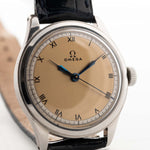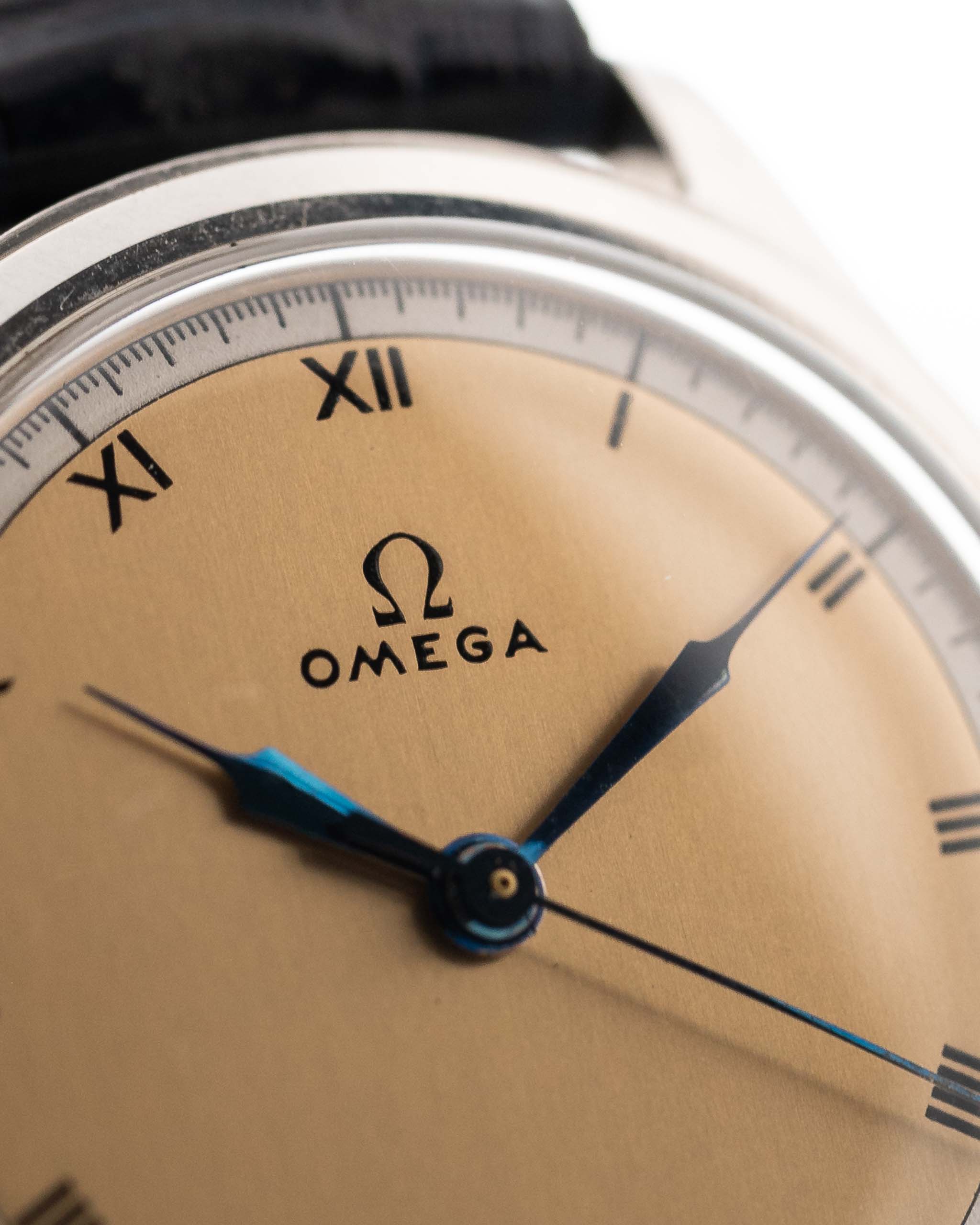 Eine Omega aus den 30er Jahren in gutem Zustand zu finden ist schwierig, aber eine mit einem schönen zweifarbigen Zifferblatt mit römischen Ziffern und gebläuten Stahlspritzenzeigern zu finden ist fast unmöglich.