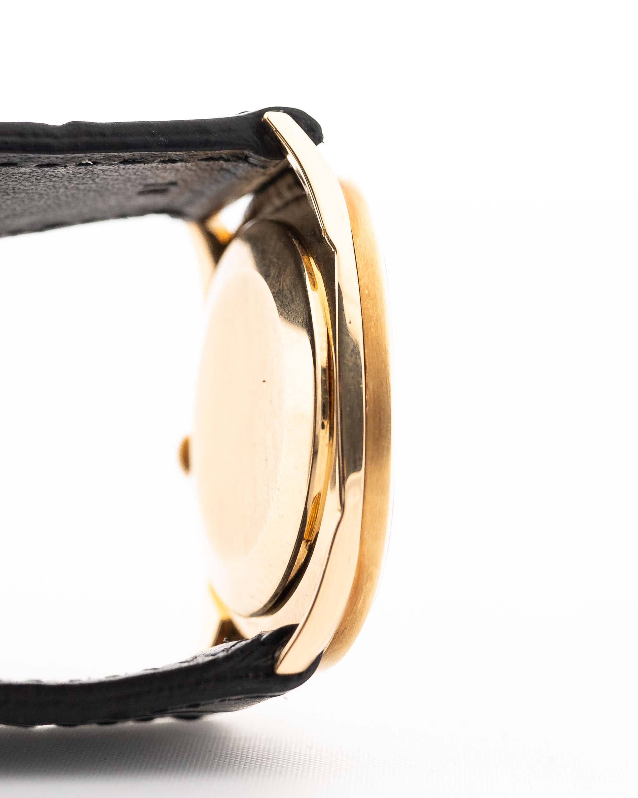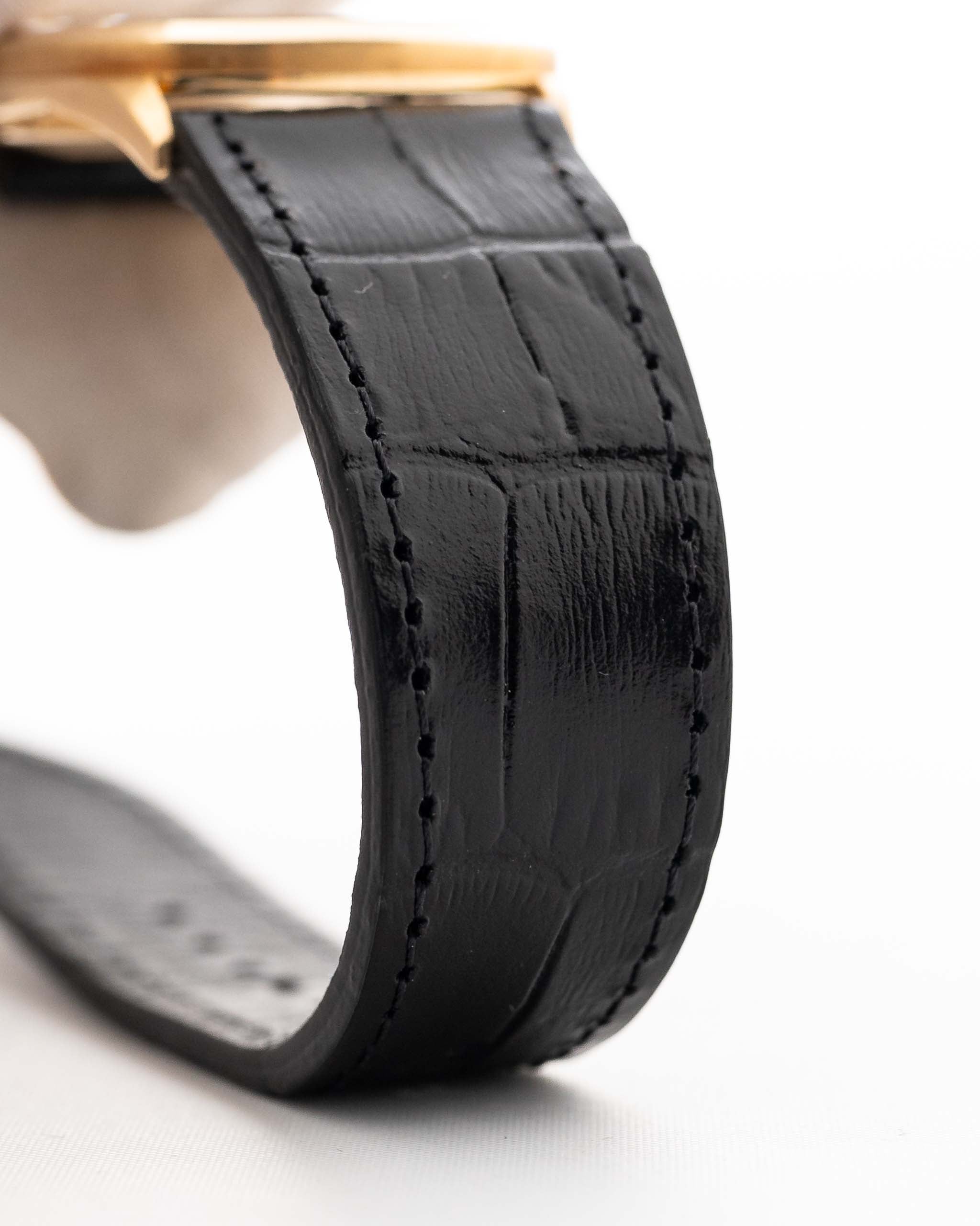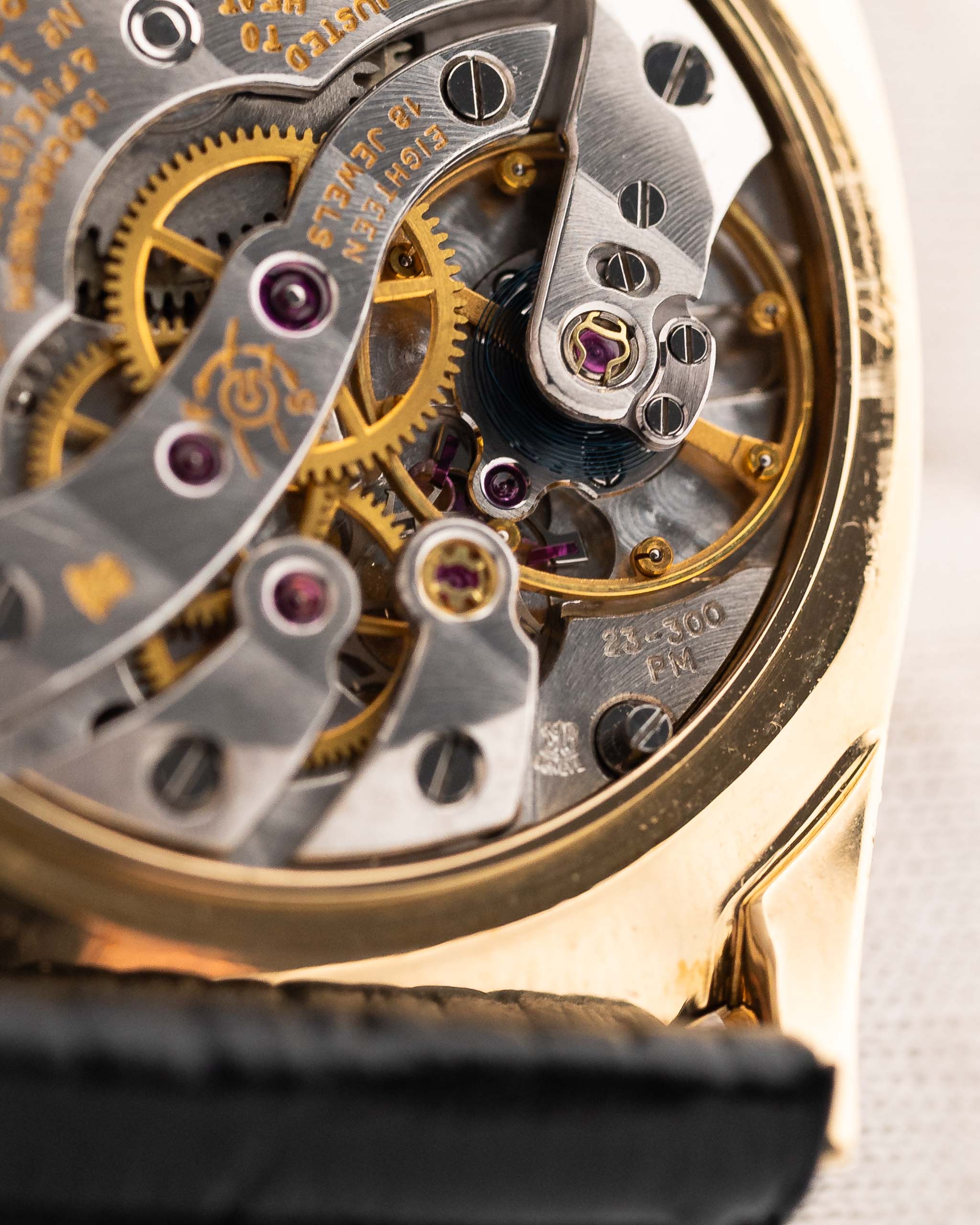 Ihr Gehäuse aus 18 Karat Gelbgold ist schlank, raffiniert und in hervorragendem Zustand. Angetrieben von dem Handaufzugskaliber 23-300 ist diese Uhr nicht nur ein optisches Meisterwerk, sondern auch ein Symbol für mechanische Exzellenz.