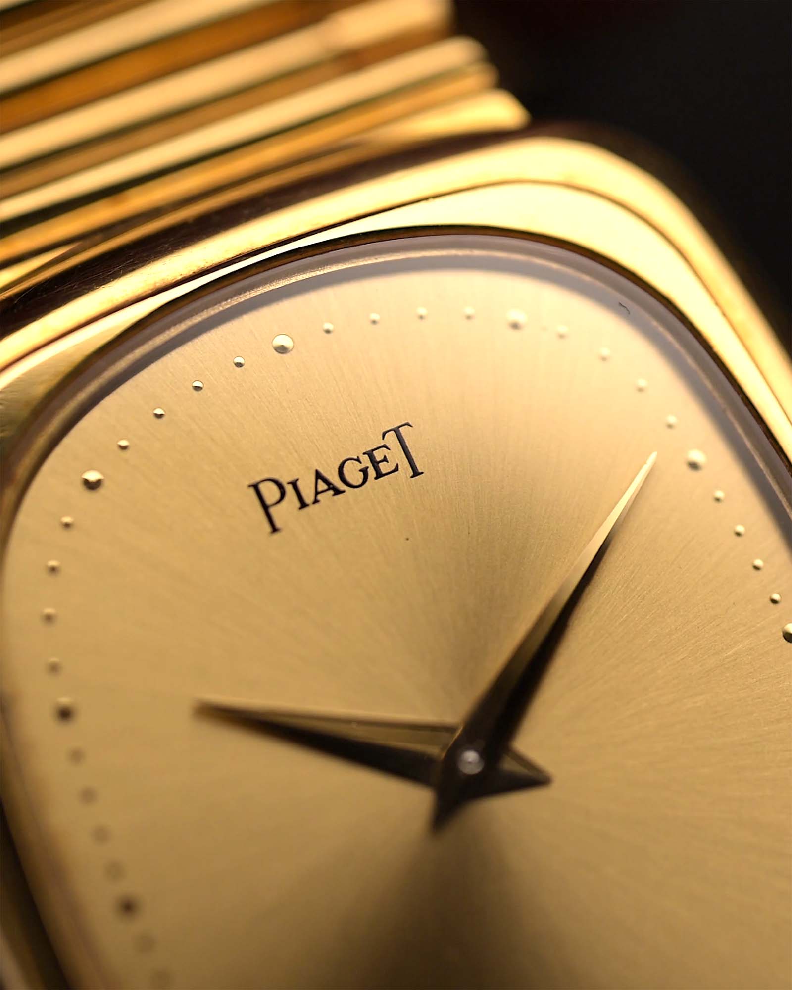 Eine Piaget Vintage Uhr zu besitzen bedeutet, mehr als nur die Zeit zu tragen. Sie tragen ein Stück Glamour aus der Mitte des Jahrhunderts, eingefangen in massivem Gold und Stein. Sie schätzen die seltene Kreuzung von Haute Horlogerie und Haute Couture.