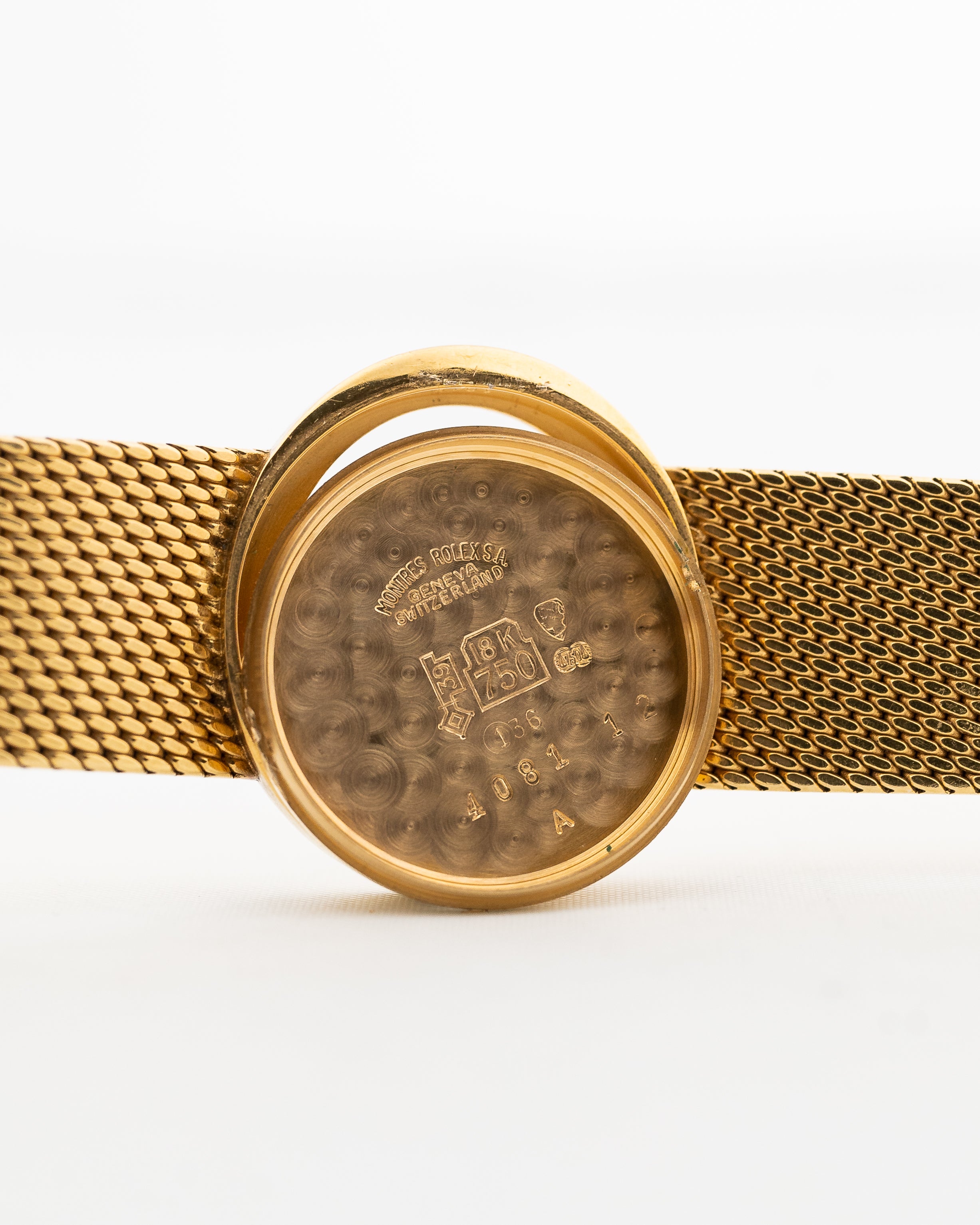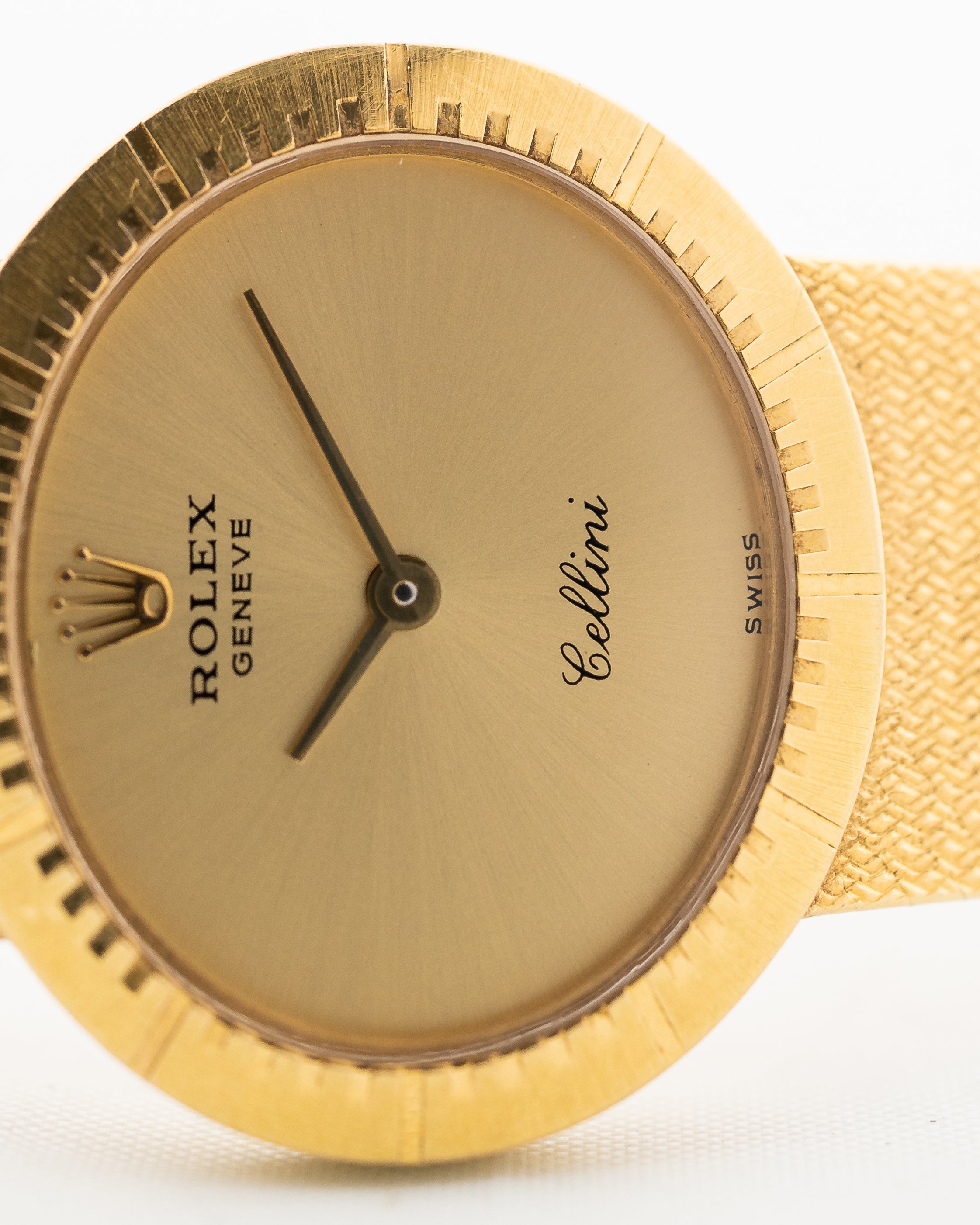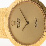 Die Rolex Cellini Linie zeigt die elegantere Seite von Rolex im Vergleich zu seinen bekannteren Sportmodellen. Diese Version ist in einem ovalen Gehäuse aus 18k-Gelbgold untergebracht, eine ungewöhnliche Gehäuseform für Rolex.