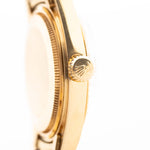 Die warmgoldene geriffelte Lünette und die dazu passenden goldenen Zeiger bilden ein harmonisches Gesamtbild mit den Brauntönen des Zifferblatts. Die Rolex 1601 mit Tigerauge-Stein-Zifferblatt ist mehr als nur eine Uhr - sie ist ein tragbares Kunstwerk, das den Geist der alten Rolex mit einer kühnen, organischen Wendung einfängt. Mit dem Rolex Jubilee-Armband aus 18 Karat Gelbgold werden Sie diesen charmanten Goldklotz jede Minute des Tages spüren.