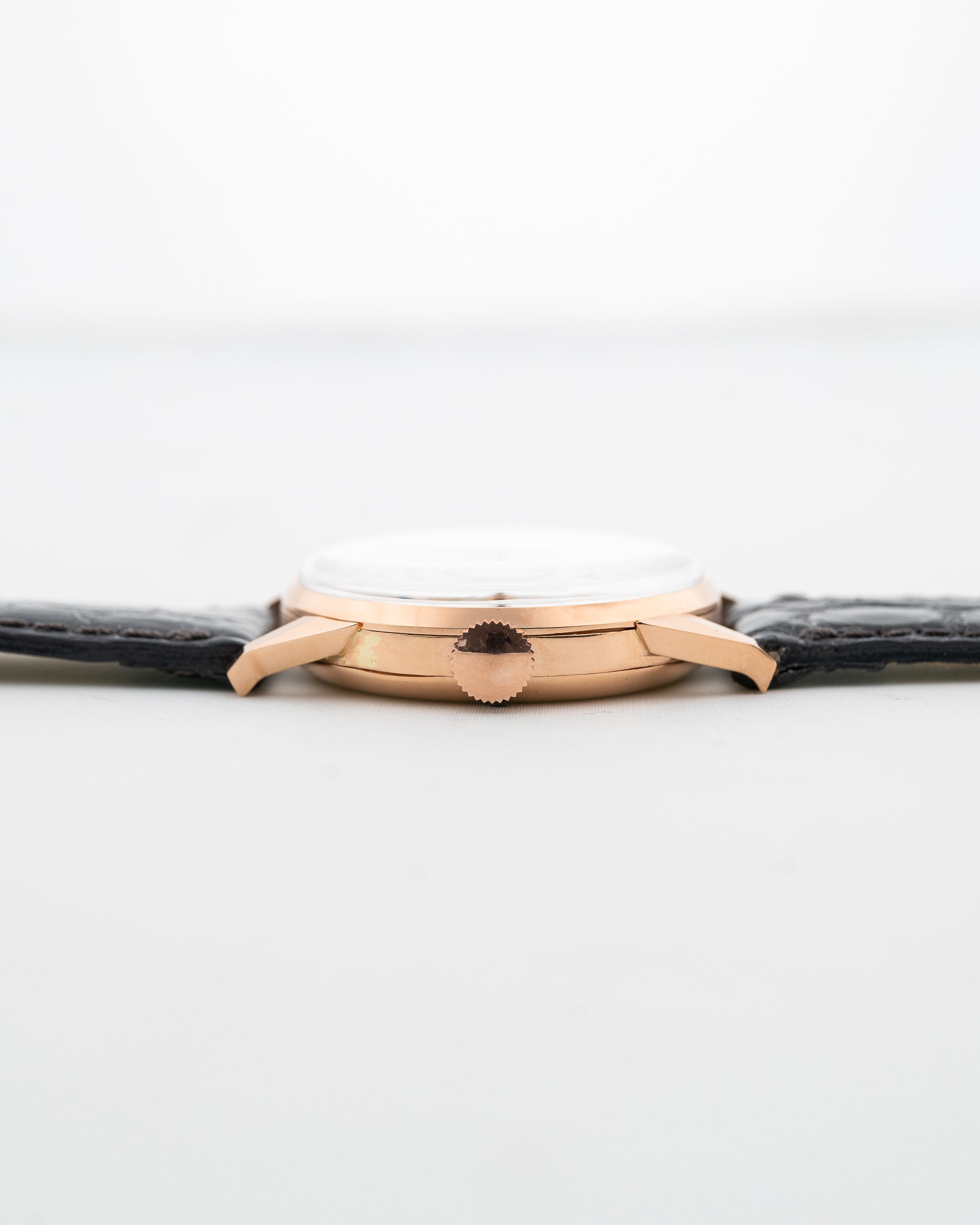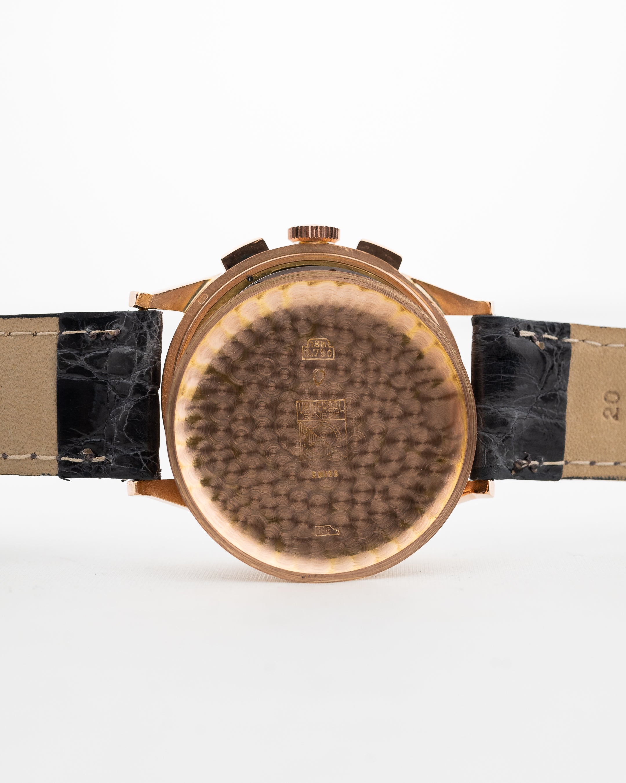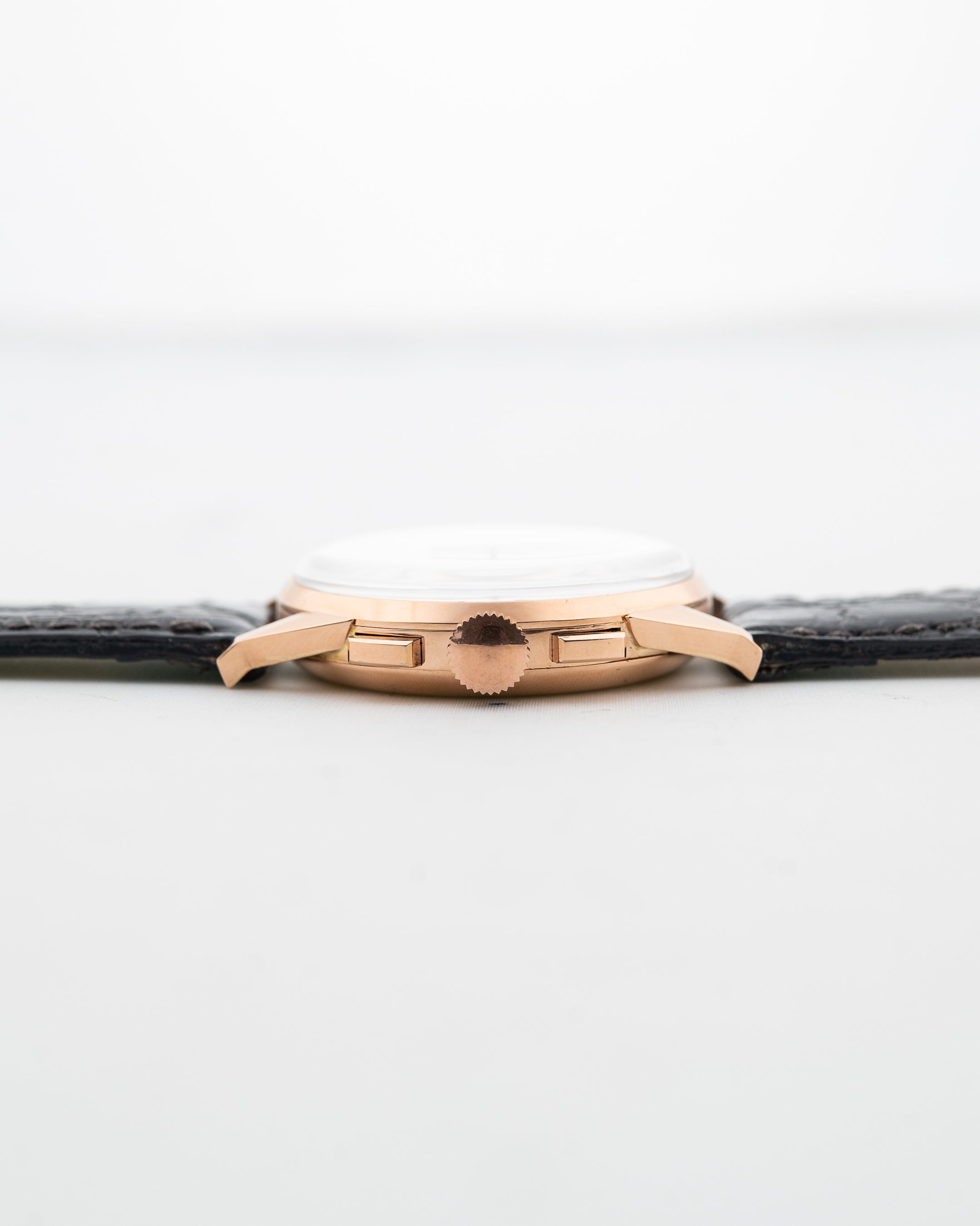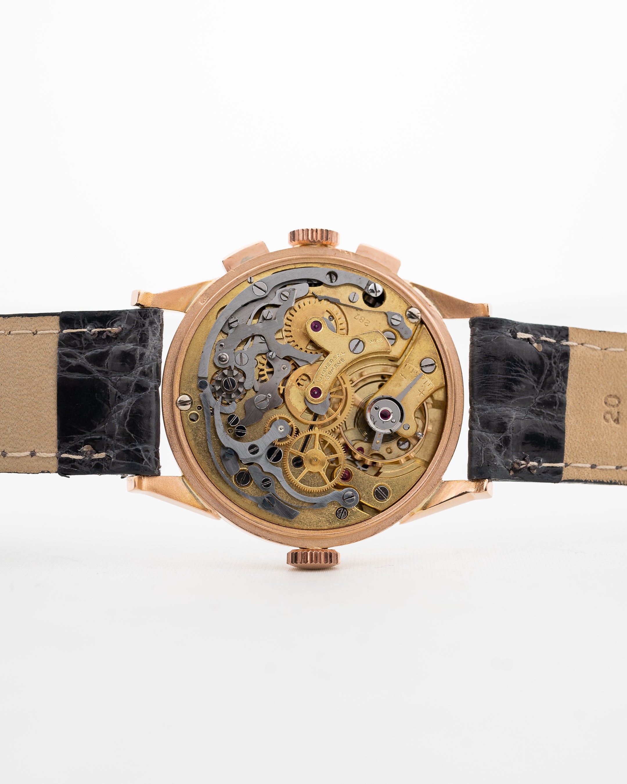 Es sind über 20 Referenzen für die Aero Compax bekannt, aber unser Exemplar aus Roségold ist eine der seltensten von allen. Sie besitzt ein riesiges 37,5 mm großes Gehäuse aus 18k Roségold und es ist fast unmöglich, sie in diesem Originalzustand zu finden.