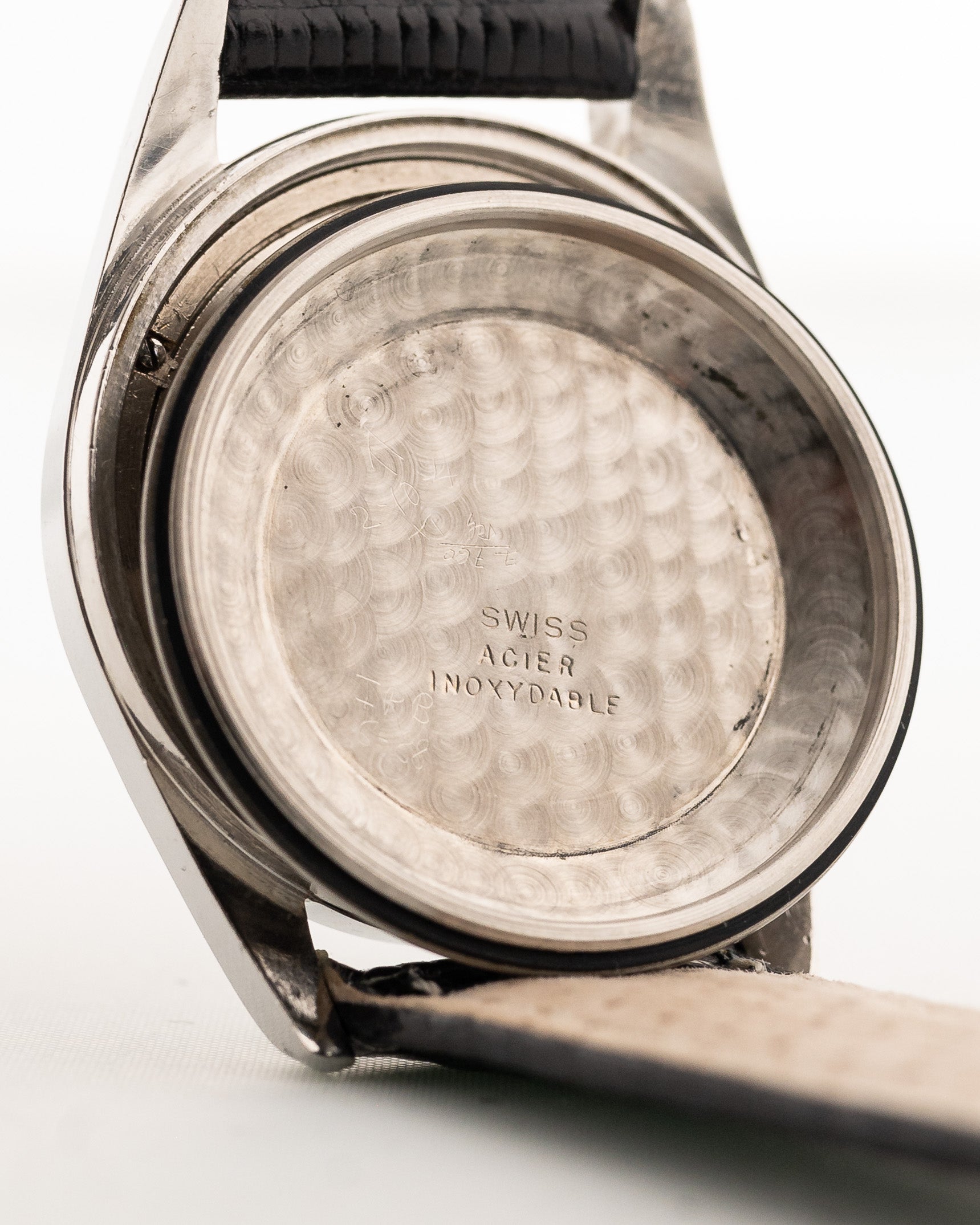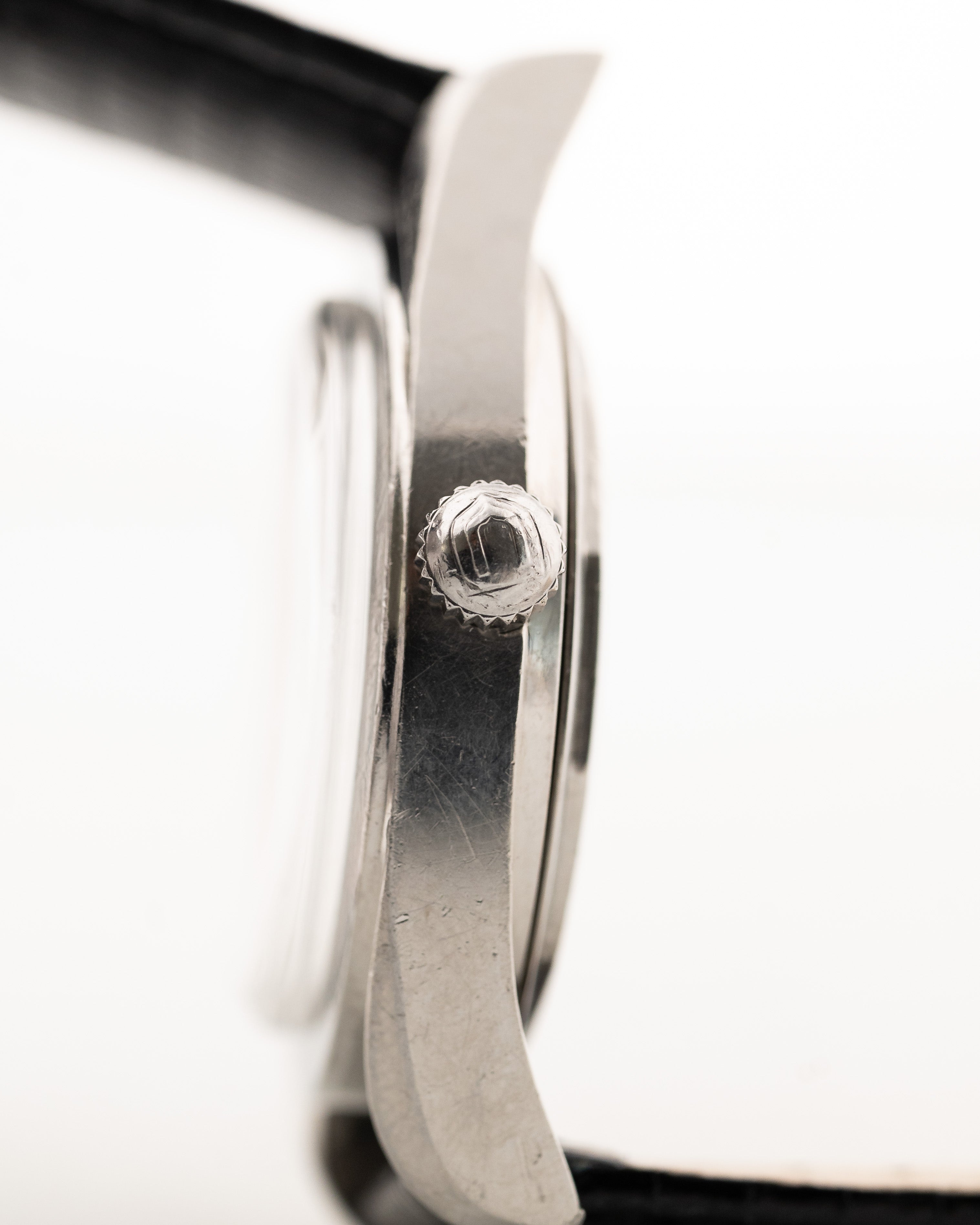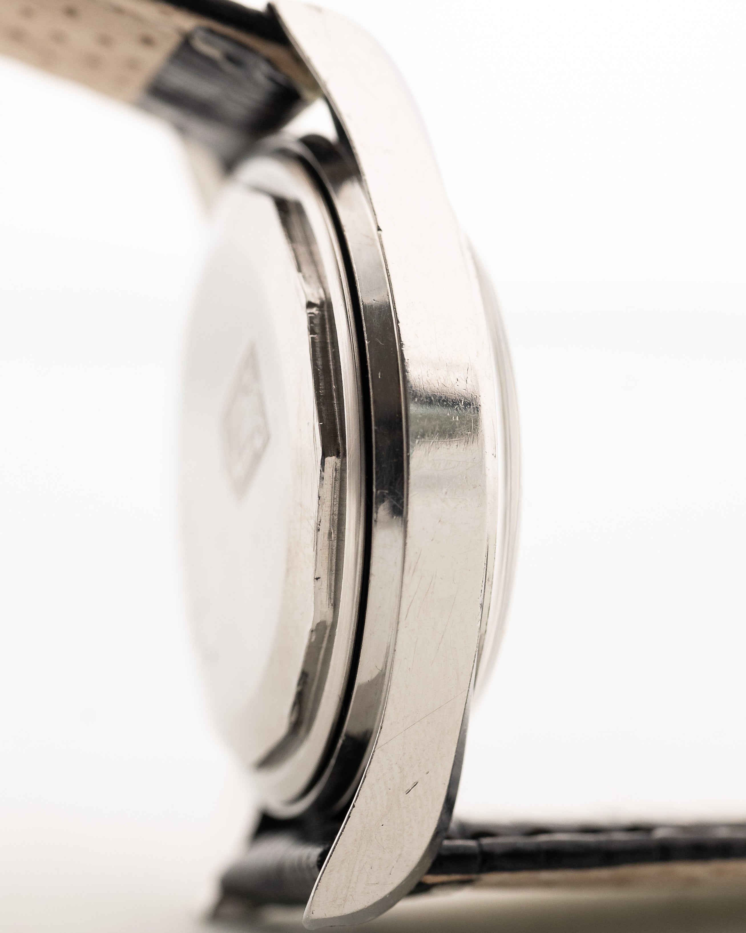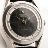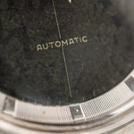 Die Version, die Sie hier sehen, ist aus Edelstahl mit einem atemberaubenden schwarzen Zifferblatt in gutem Zustand und einem verspiegelten Stahlkapitellring. Insgesamt ist dies eine wunderschön gestaltete Uhr mit einer reichen Luftfahrtgeschichte. Dieses Stück ist eines der früheren Modelle, da es das 138SS Stoßstangenwerk beherbergt, das der Vorgänger des berühmten Microtors war , der in späteren Polerouter-Modellen verwendet wurde.