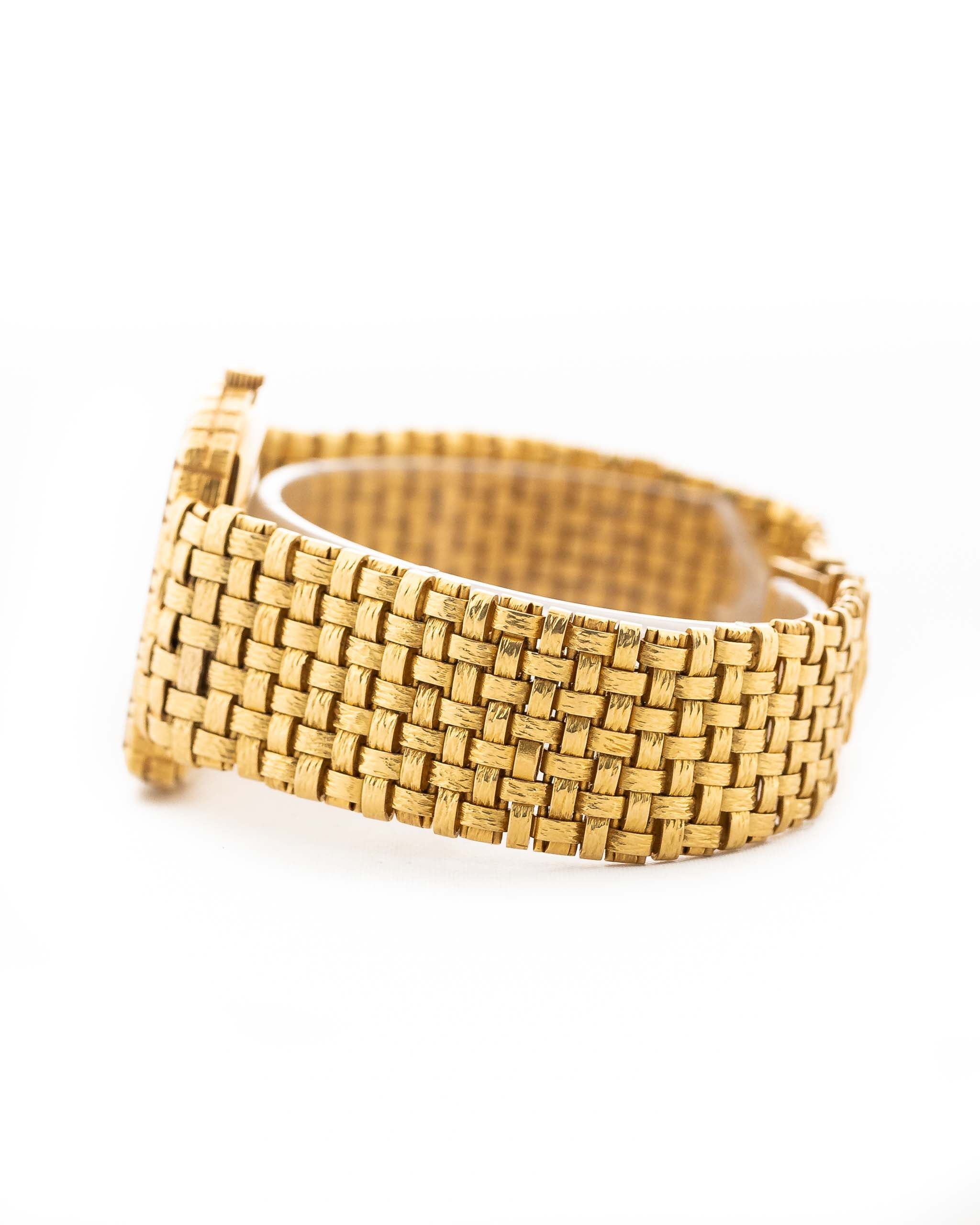 • originales, nie berührtes goldenes Zifferblatt in makellosem Zustand mit einer zum Armband passenden Korbstruktur