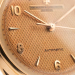 • originales, nie berührtes cremefarbenes Guilloché-Zifferblatt in hervorragendem Zustand mit warmer Roségoldpatina