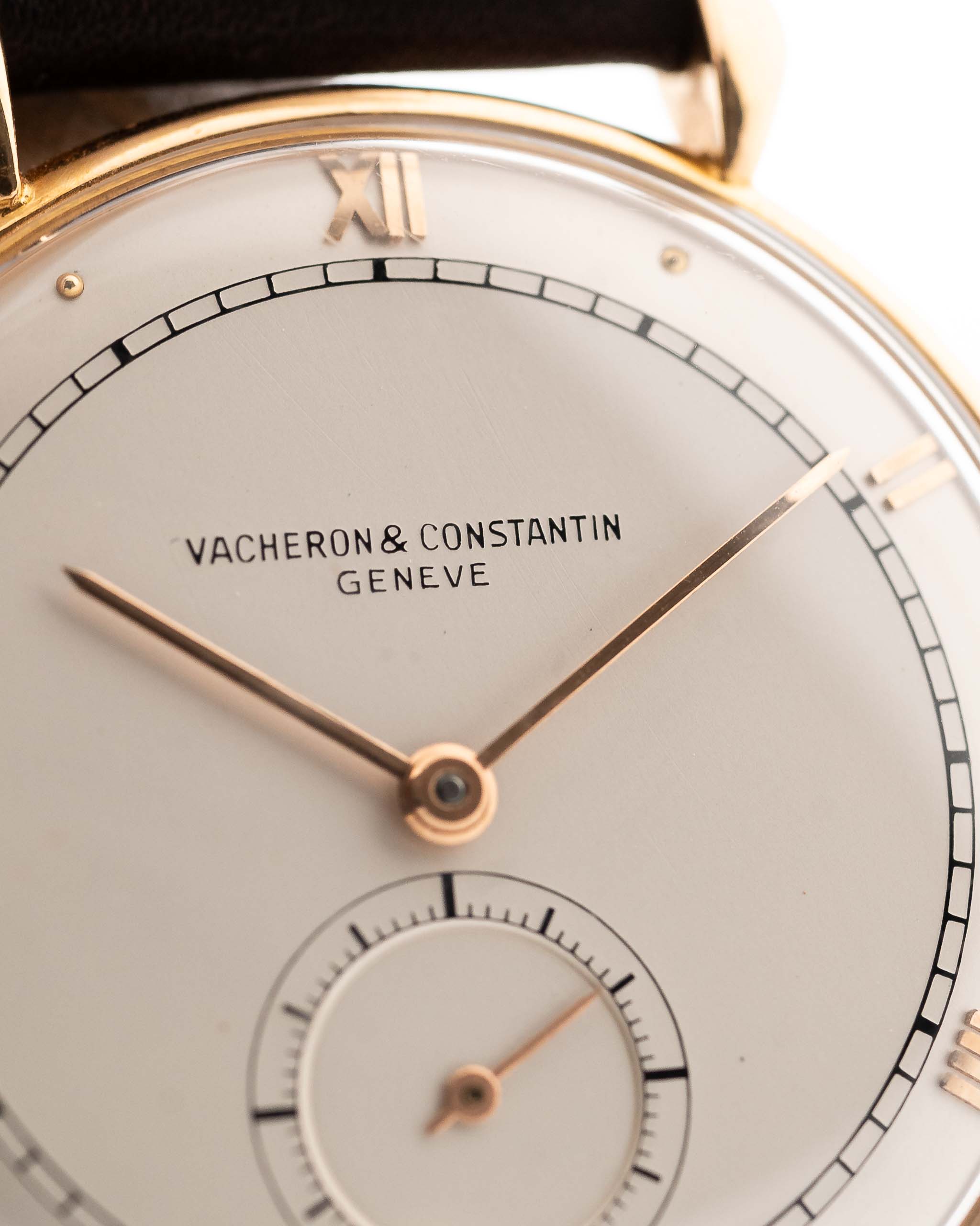 Hier haben wir eine wunderschön gearbeitete Vacheron Constantin-Kleideruhr aus den 1940er Jahren mit einzigartigen tropfenförmigen Anstößen und einem erstaunlich gestalteten Zifferblatt mit so vielen Details, dass es schwierig ist, sie alle zu erwähnen.