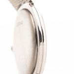 Das versilberte Zifferblatt verfügt über werkseitig gesetzte Diamantindexe - dezent, ausgewogen und unverkennbar luxuriös. Zusammen mit den schlanken Stabzeigern und dem minimalistischen Layout ergibt sich eine unaufdringlich elegante Ästhetik, die auch heute noch zeitlos wirkt.