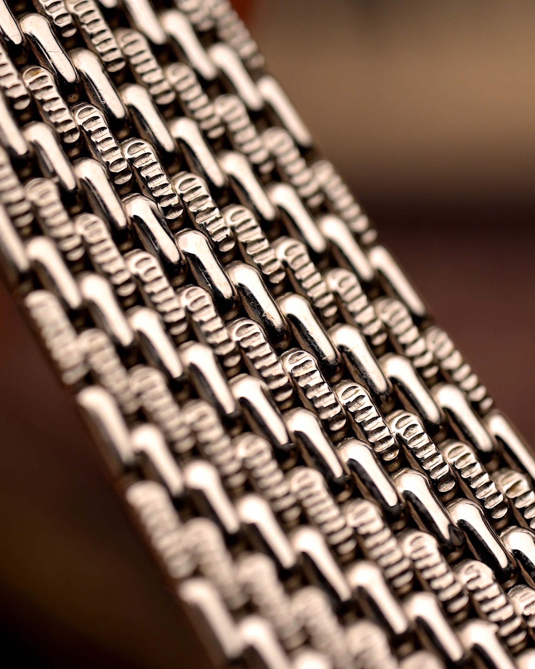 Dieses Cobra-Modell aus den 1990er Jahren ist eine seltene und faszinierende Kreation aus der künstlerischen Ära von Audemars Piguet und zeichnet sich durch sein markantes, skulpturales Armband und seine luxuriöse Diamantausführung aus. Die Uhr ist vollständig aus 18 Karat Weißgold gefertigt und verfügt über ein kompaktes 26,5-mm-Gehäuse, das mit dem wunderschön verarbeiteten, schuppenartigen integrierten Armband von AP kombiniert ist – dem charakteristischen Merkmal der Cobra-Ästhetik.